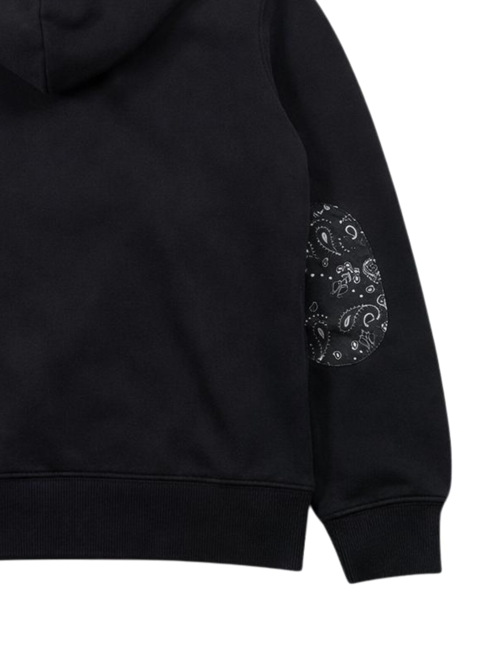 Sun68 Kids felpa di colore nero, modello con cappuccio, manica lunga, caratterizzata da toppe in fantasia bandana sui gomiti, polsini a costine, orlo dritto, vestibilità regolare. Composizione: 100% cotone