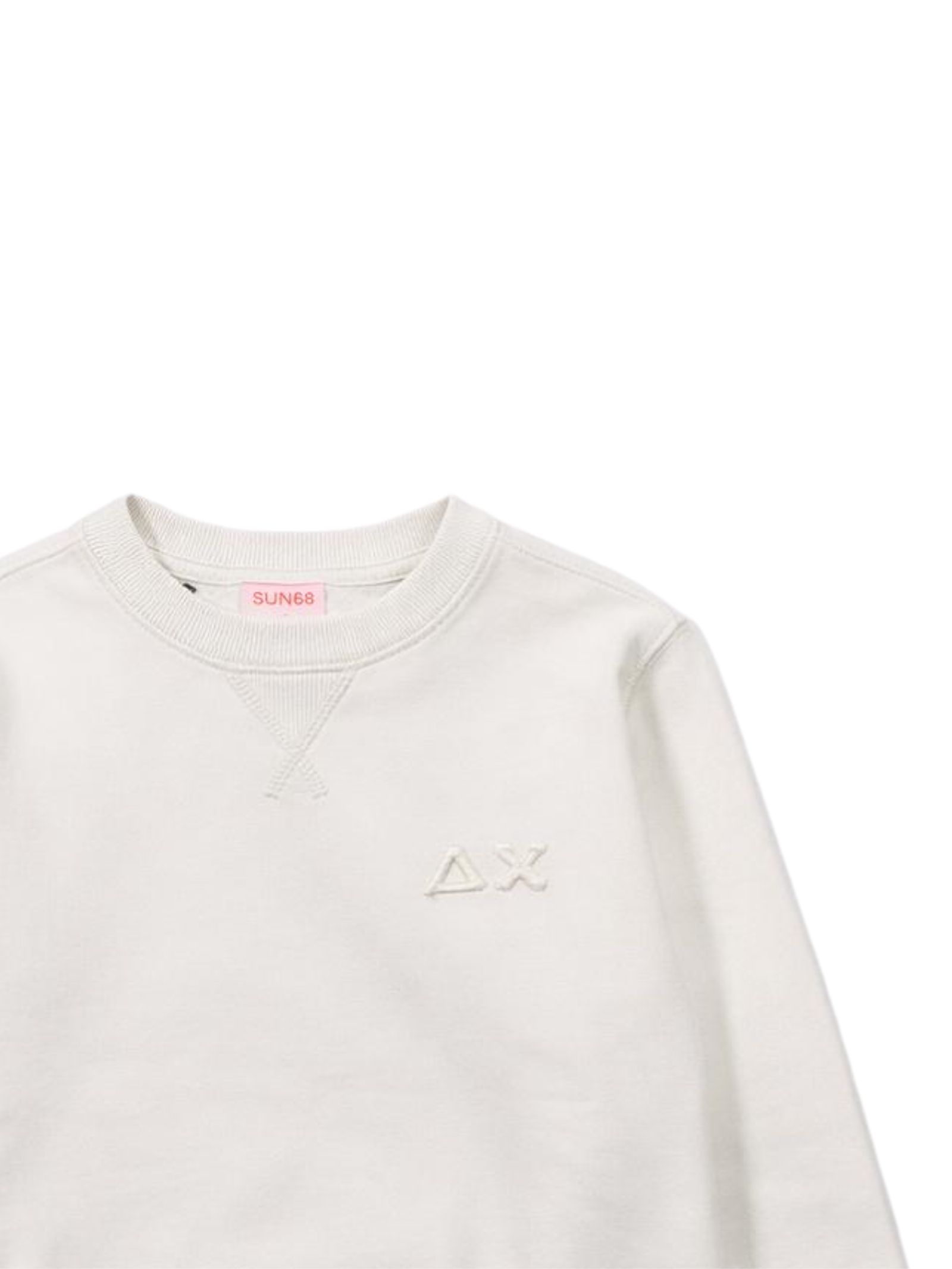 Sun68 Kids felpa di colore panna, modello girocollo, manica lunga, caratterizzata da ricamo logo sul petto, polsini a costine, orlo dritto, vestibilità regolare. Composizione: 100% cotone