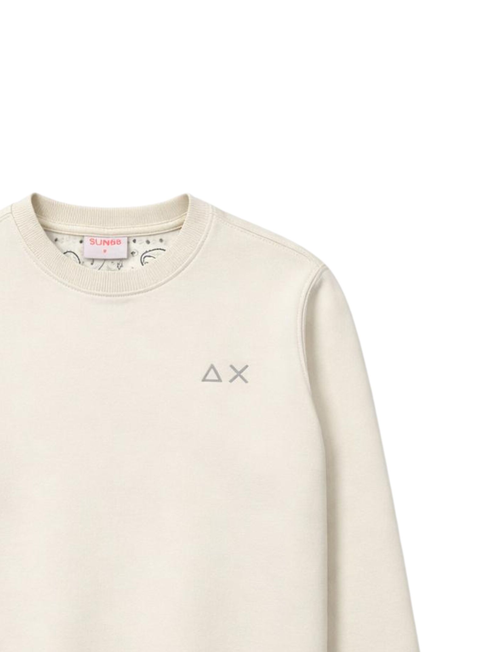 Sun68 Kids felpa di colore panna, modello girocollo, manica lunga, caratterizzata da toppe in fantasia bandana sui gomiti, polsini a costine, orlo dritto, vestibilità regolare. Composizione: 100% cotone