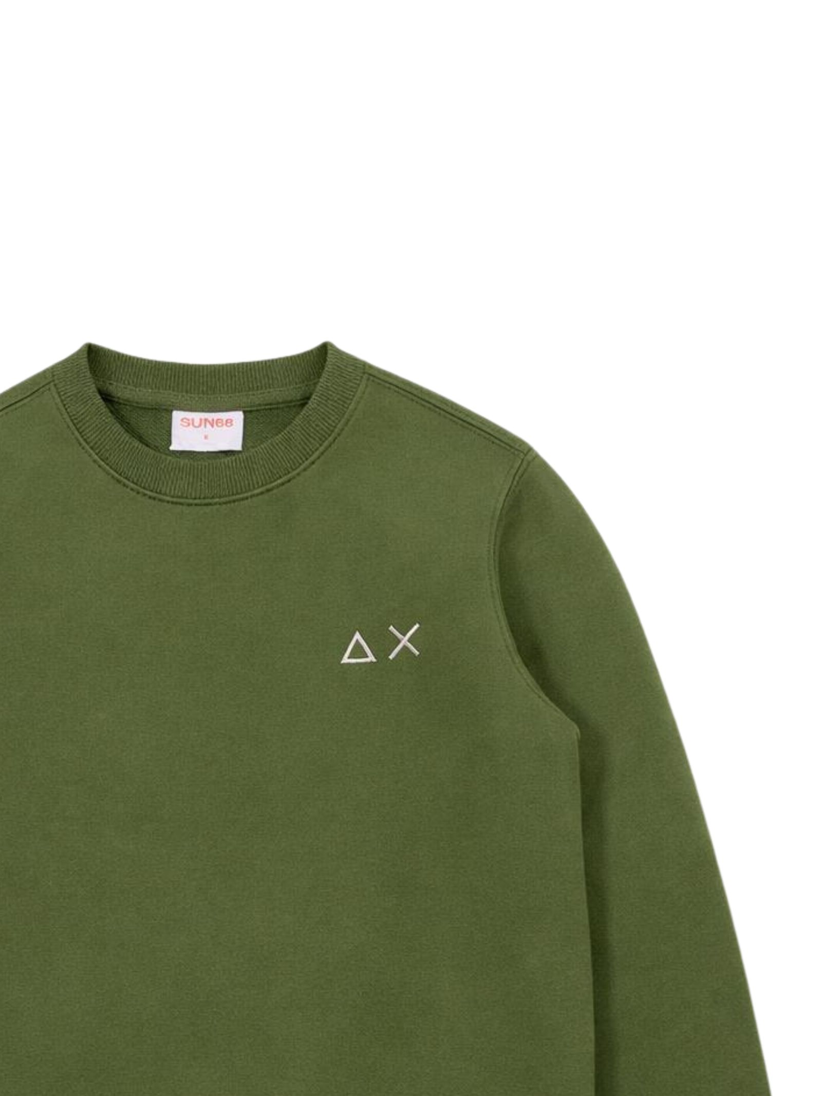 Sun68 Kids felpa di colore verde, modello girocollo, manica lunga, caratterizzata da ricamo logo sul petto a contrasto, polsini a costine, orlo dritto, vestibilità regolare. Composizione: 100% cotone