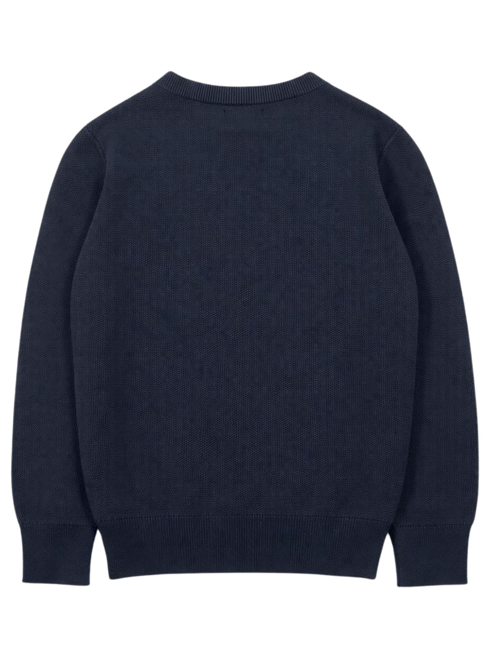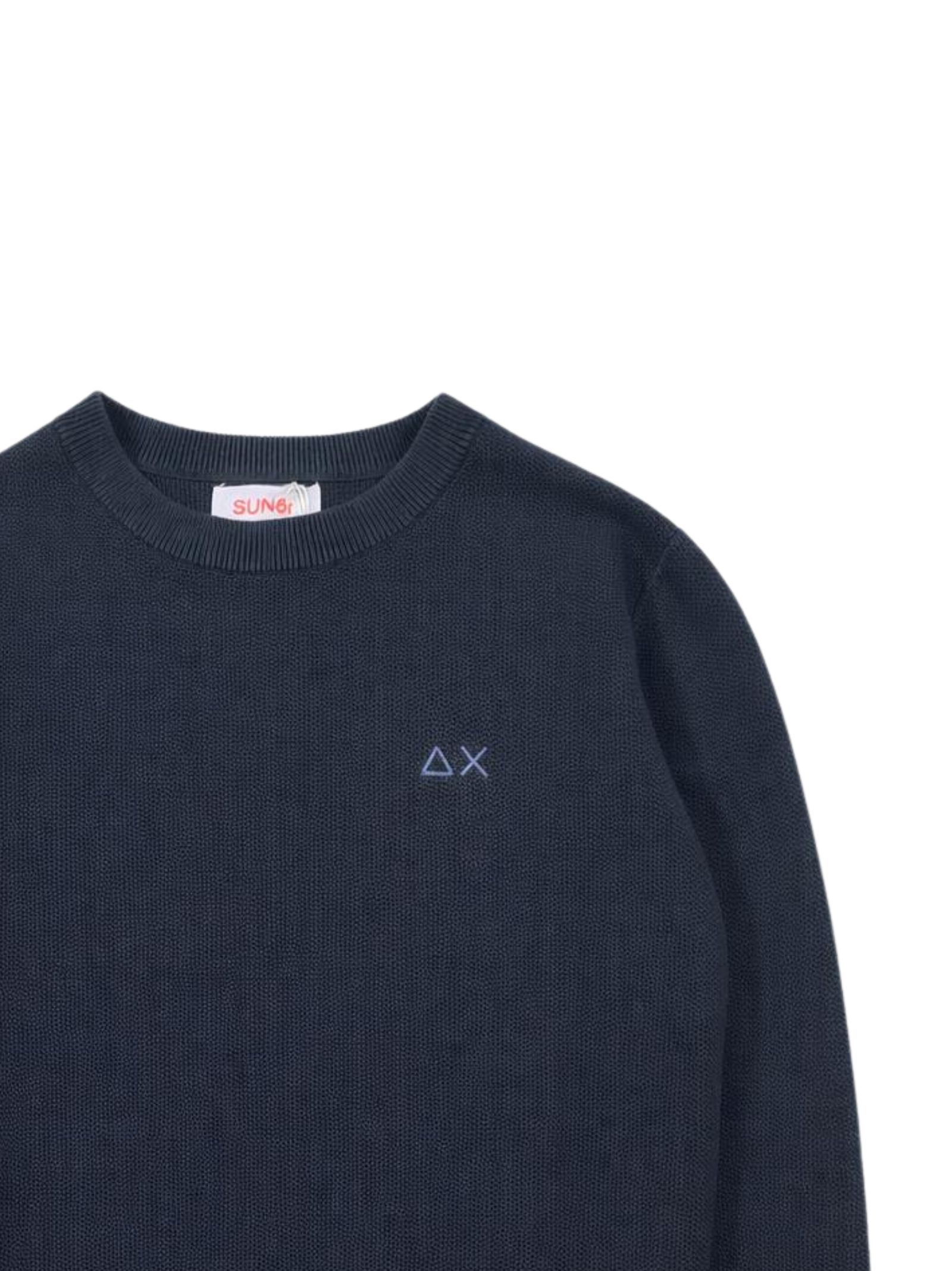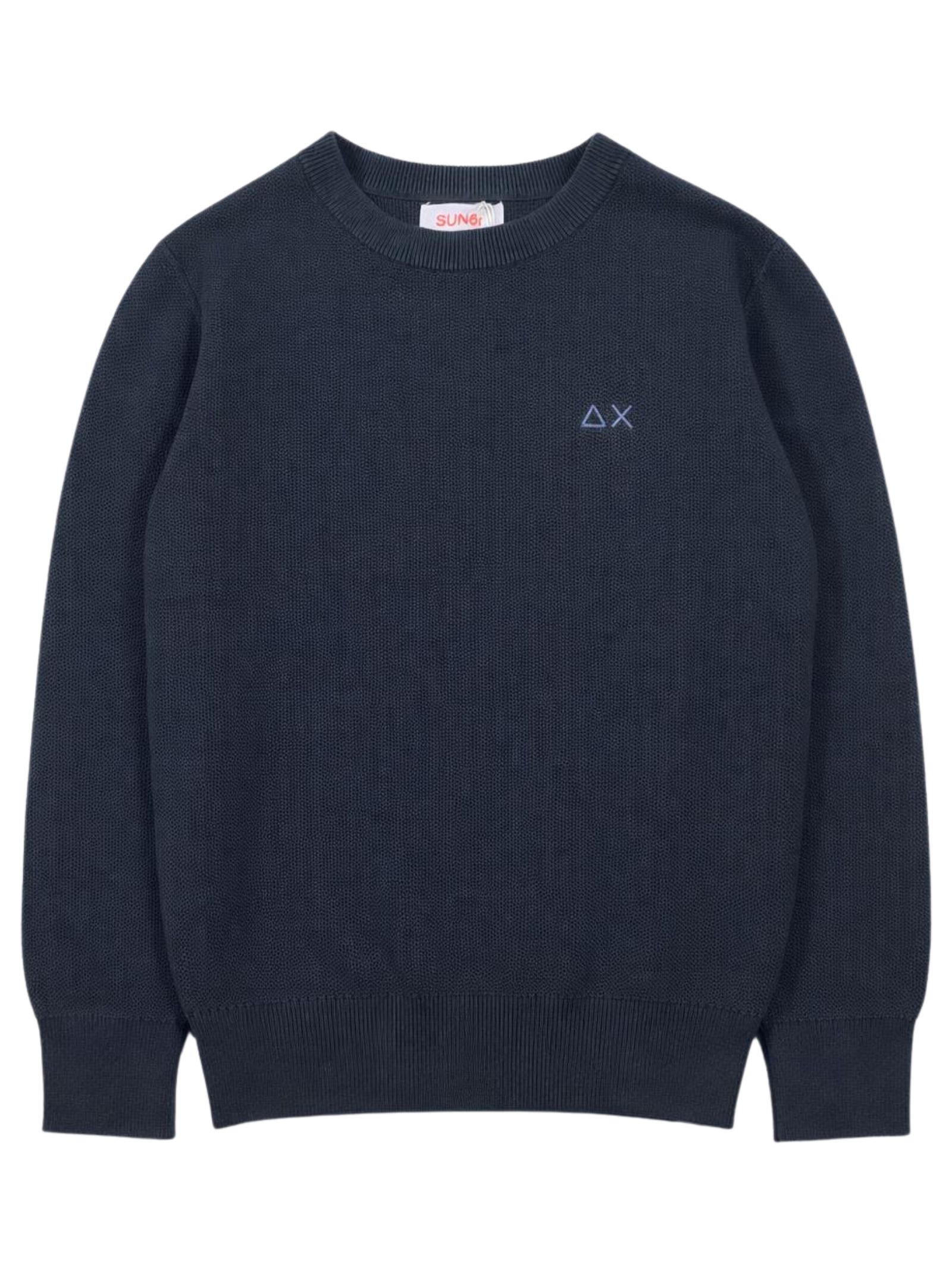 Sun68 Kids maglione di colore blu, realizzato in maglia di cotone sottile effetto nido d'ape, modello girocollo, manica lunga, caratterizzato da ricamo logo a contrasto sul petto, orli a costine, vestibilità regolare. Composizione: 100% cotone