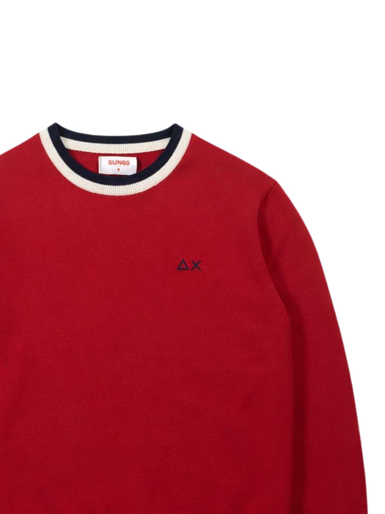 Sun68 Kids maglione di colore bordeau, dettagli a contrasto, realizzato in maglia sottile, modello girocollo, manica lunga, caratterizzato da ricamo logo a contrasto sul petto, orli a costine, vestibilità regolare. Composizione: 100% cotone