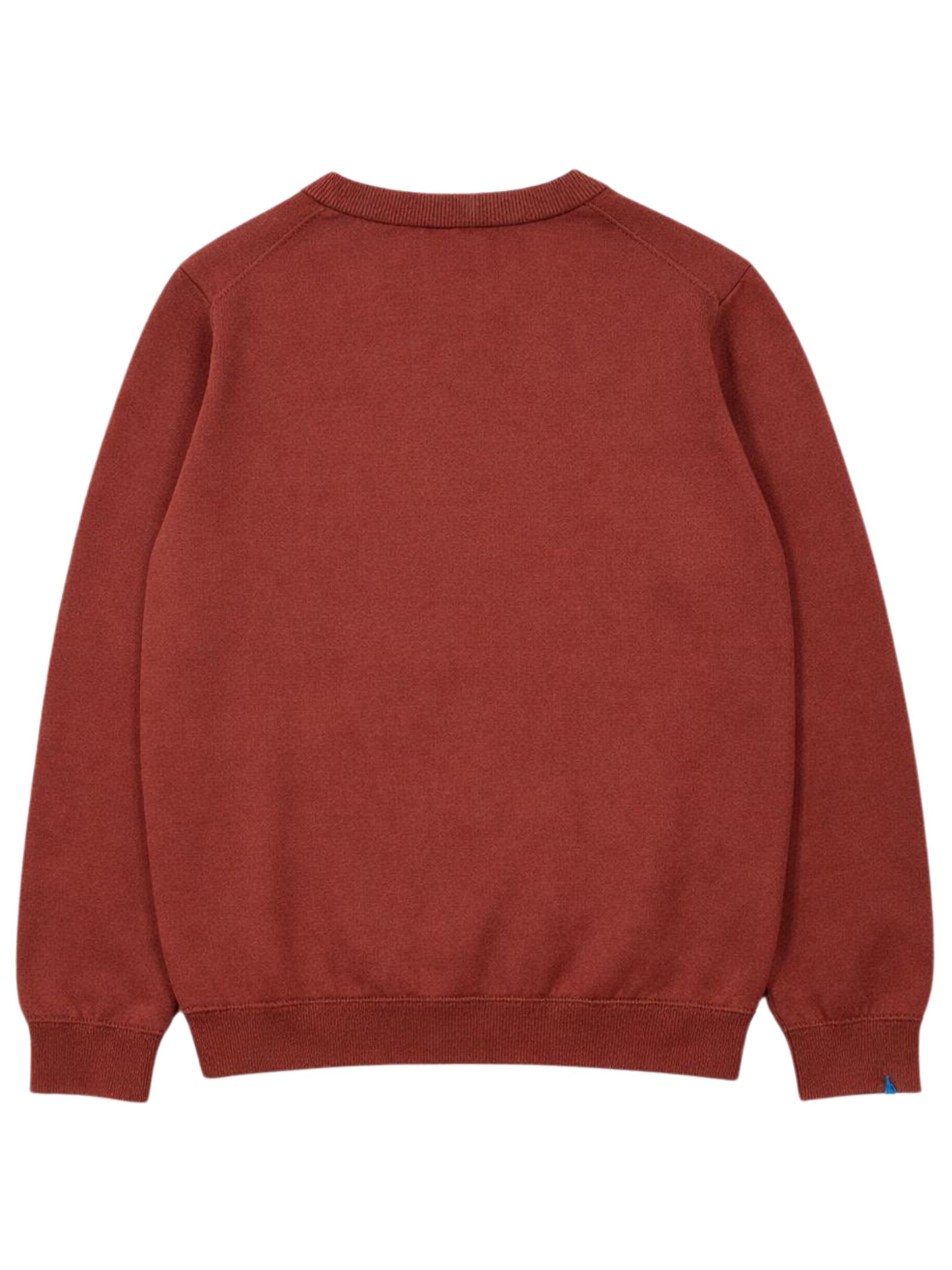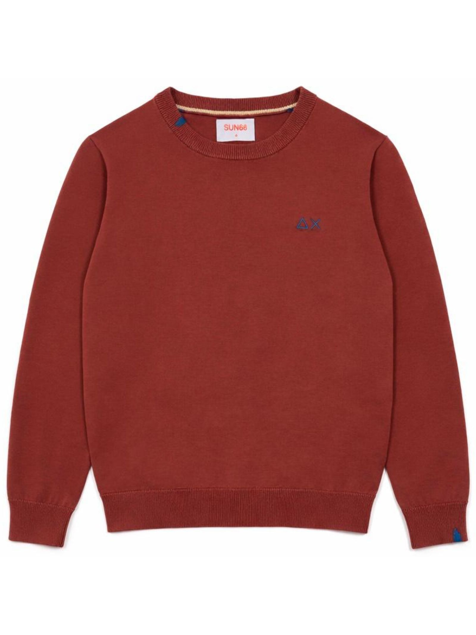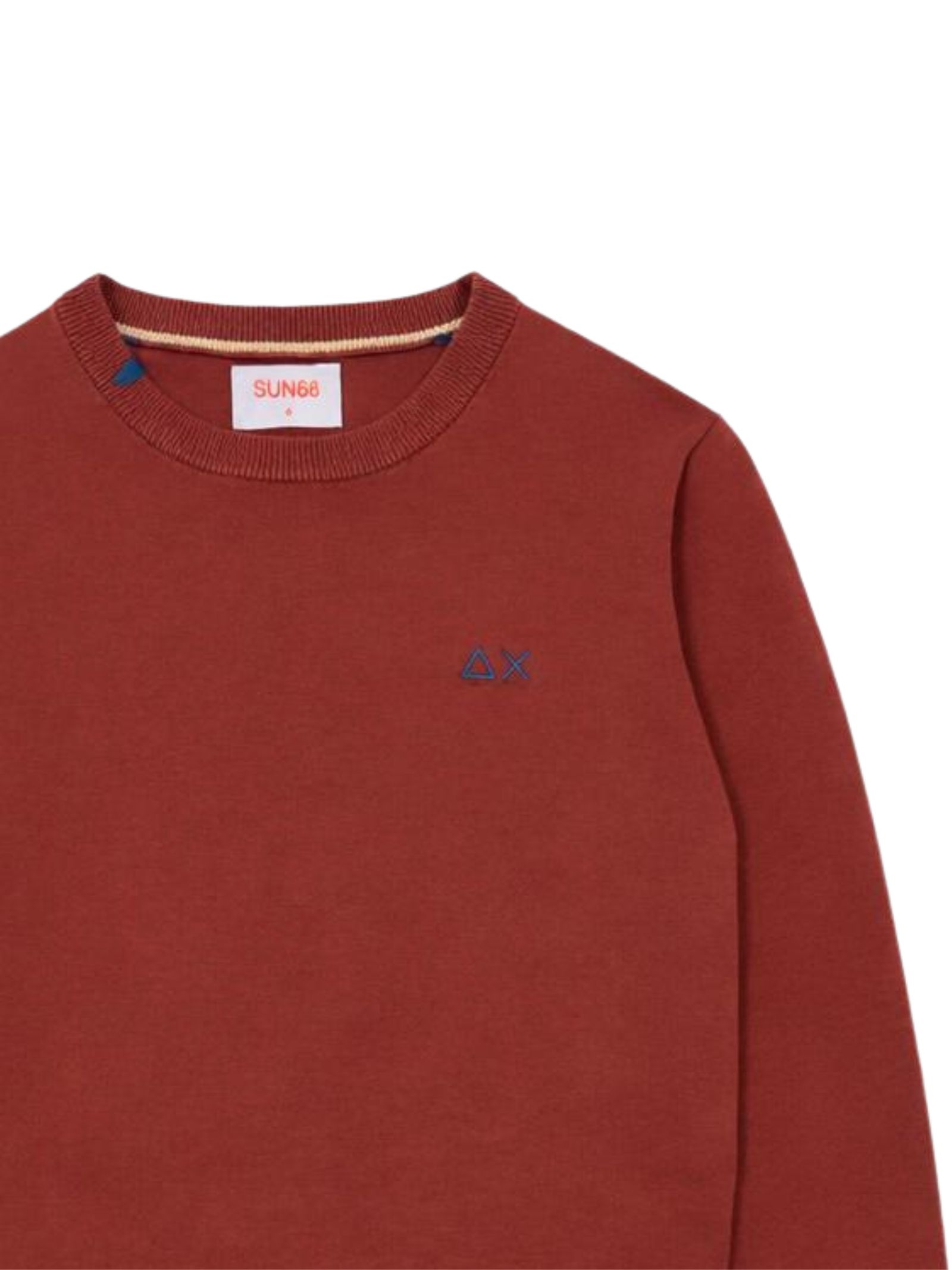 Sun68 Kids maglione color cacao, realizzato in maglia sottile, modello girocollo, manica lunga, caratterizzato da ricamo logo a contrasto sul petto, orli a costine, vestibilità regolare. Composizione: 100% cotone