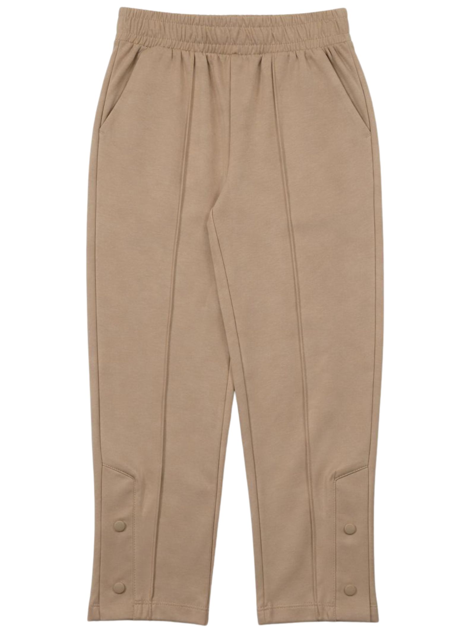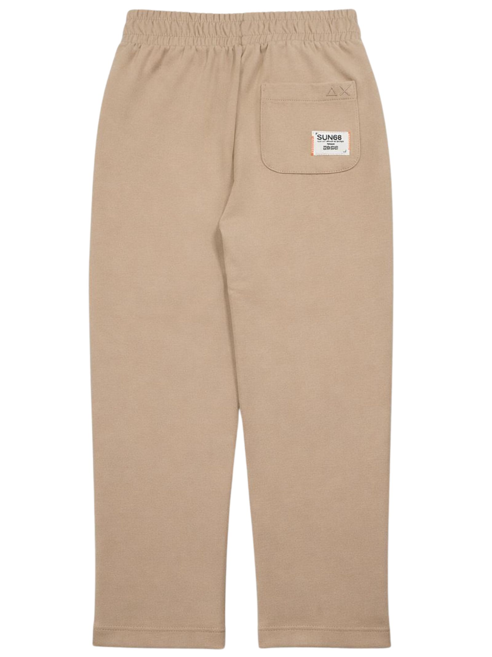 Sun68 Kids pantalone di colore beige, modello con elastico in vita e coulisse interna, tre tasche, patch con logo, caviglie con bottoni automatici, vestibilità regolare. Composizione: 91% cotone 9% nylon