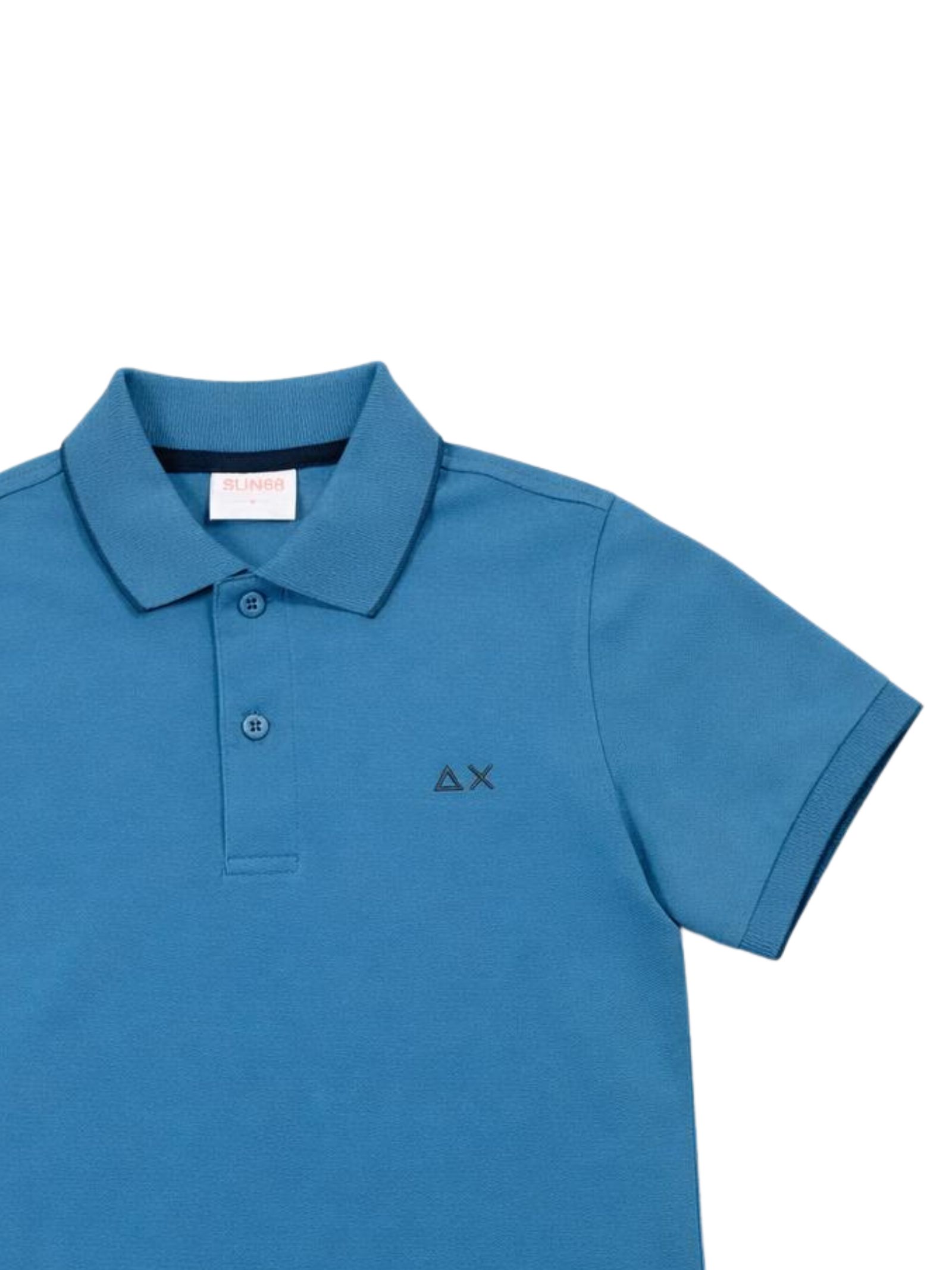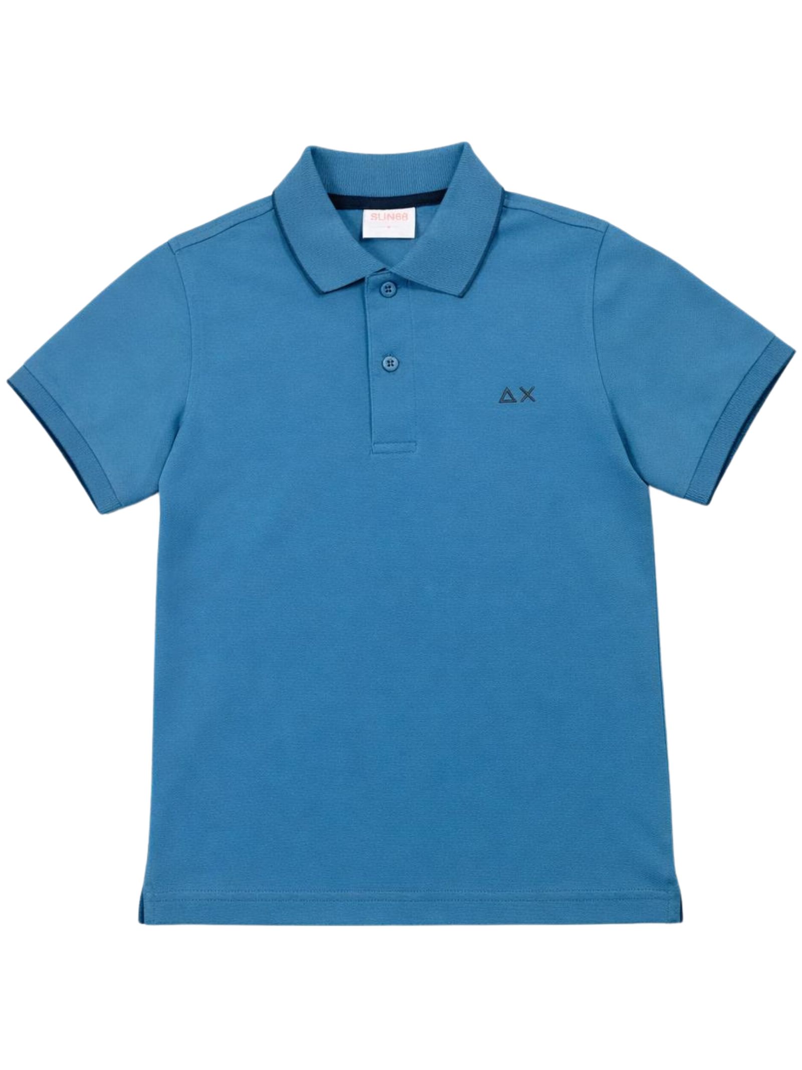 Sun68 Kids polo di colore avio, realizzata in cotone piquet, dettagli a contrasto, mezza manica, logo ricamato sul petto, orlo dritto, vestibilità regolare. Composizione: 95% cotone 5% elastan