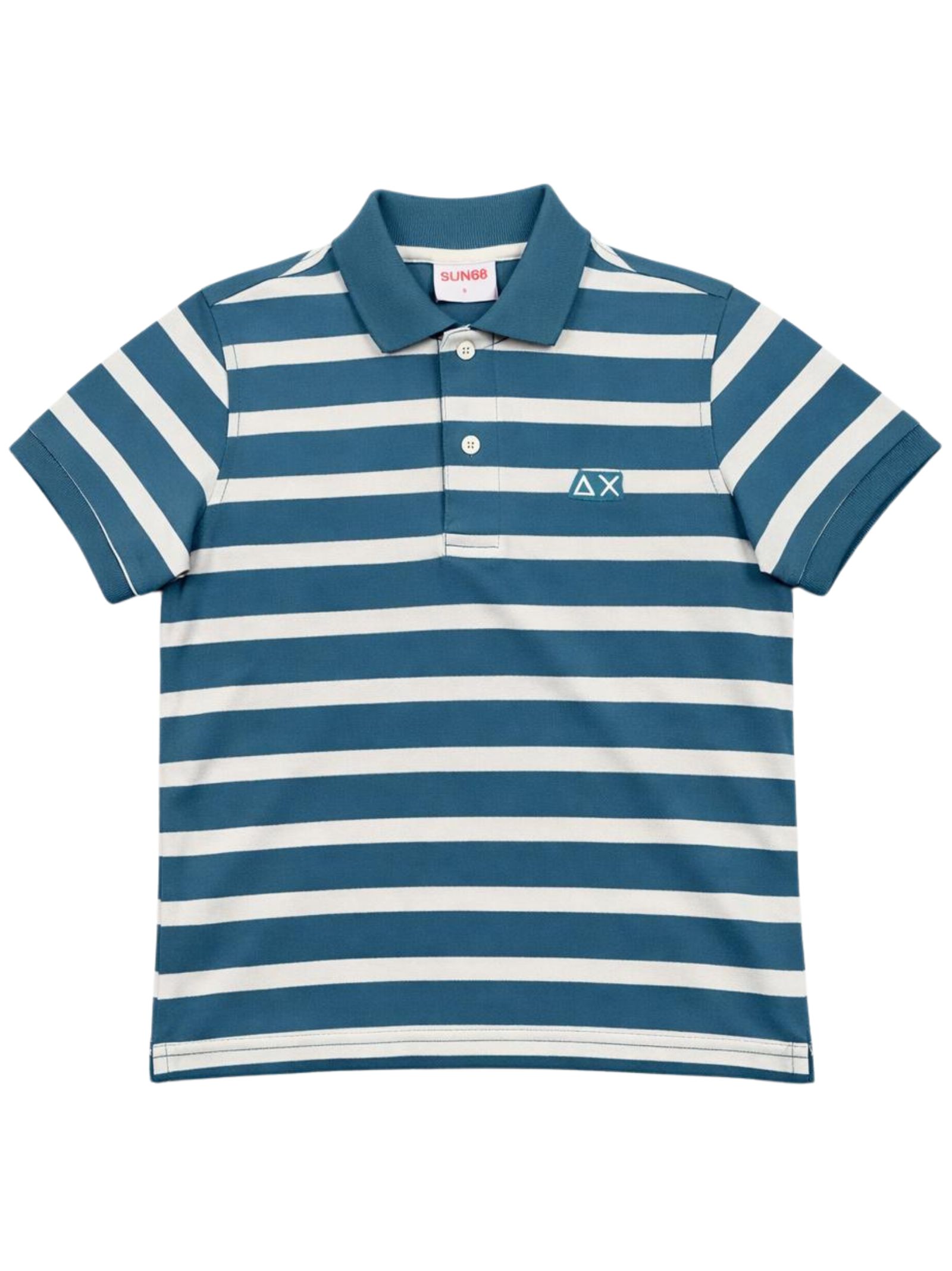 Sun68 Kids polo in fantasia a righe di colore avio/panna, realizzata in cotone piquet, mezza manica, logo ricamato sul petto, orlo dritto, vestibilità regolare. Composizione: 100% cotone