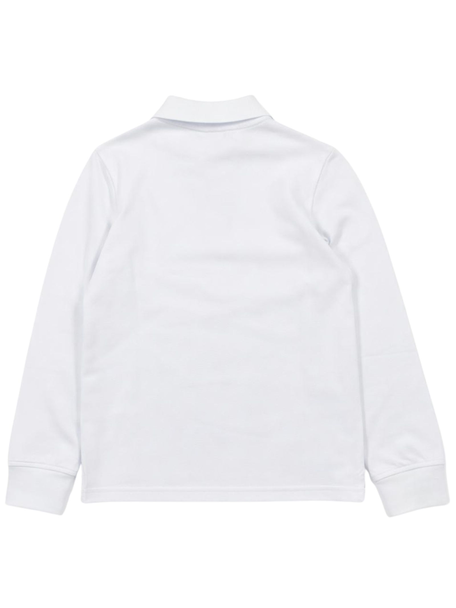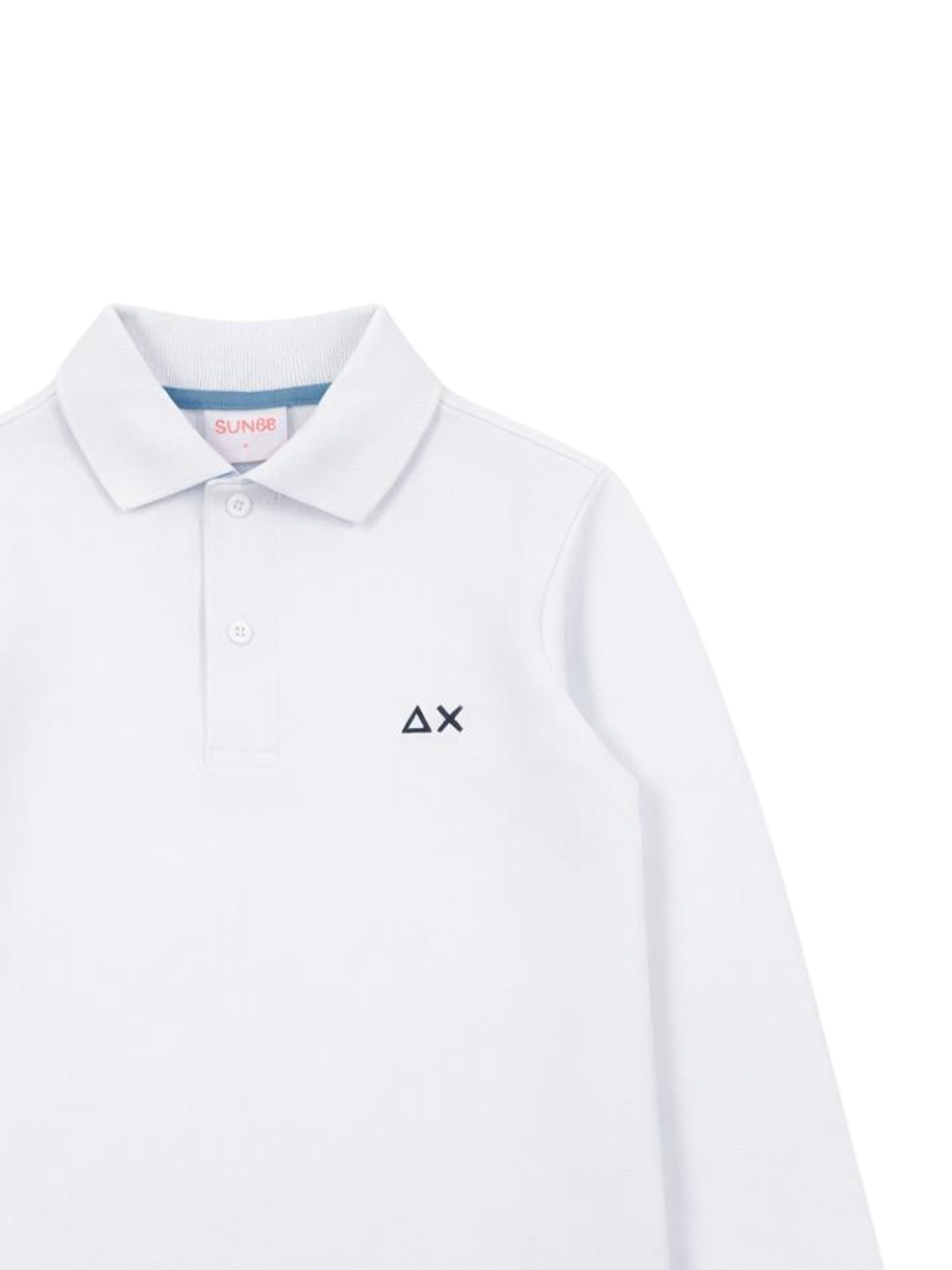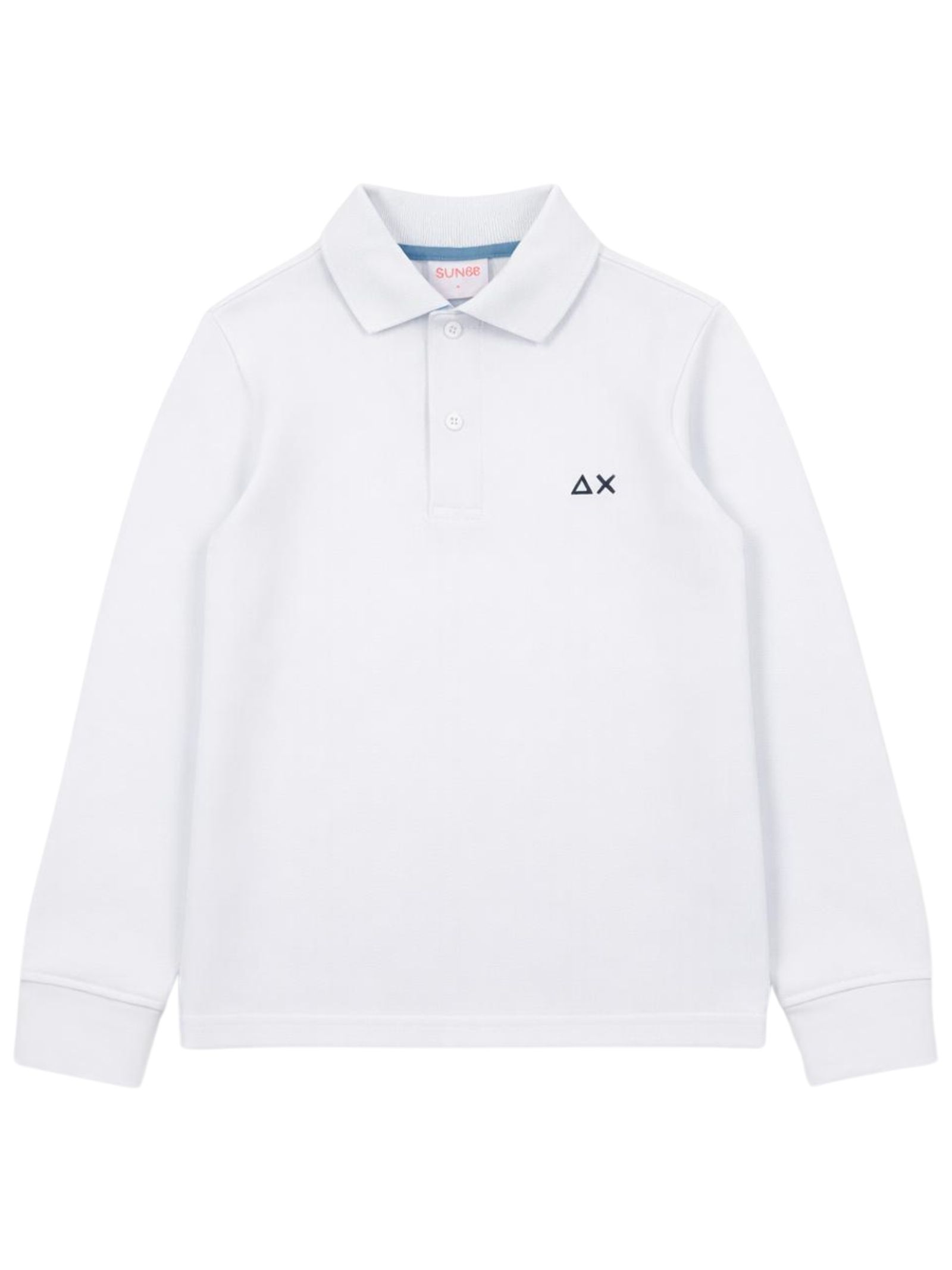 Sun68 Kids polo di colore bianco, realizzata in cotone piquet, modello manica lunga, caratterizzata da ricamo logo sul petto a contrasto, polsini a costine, orlo dritto, spacchetti laterali, vestibilità regolare. Composizione: 95% cotone 5% elastan