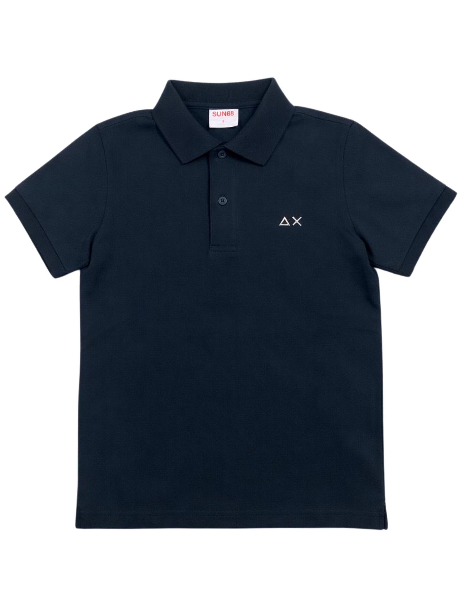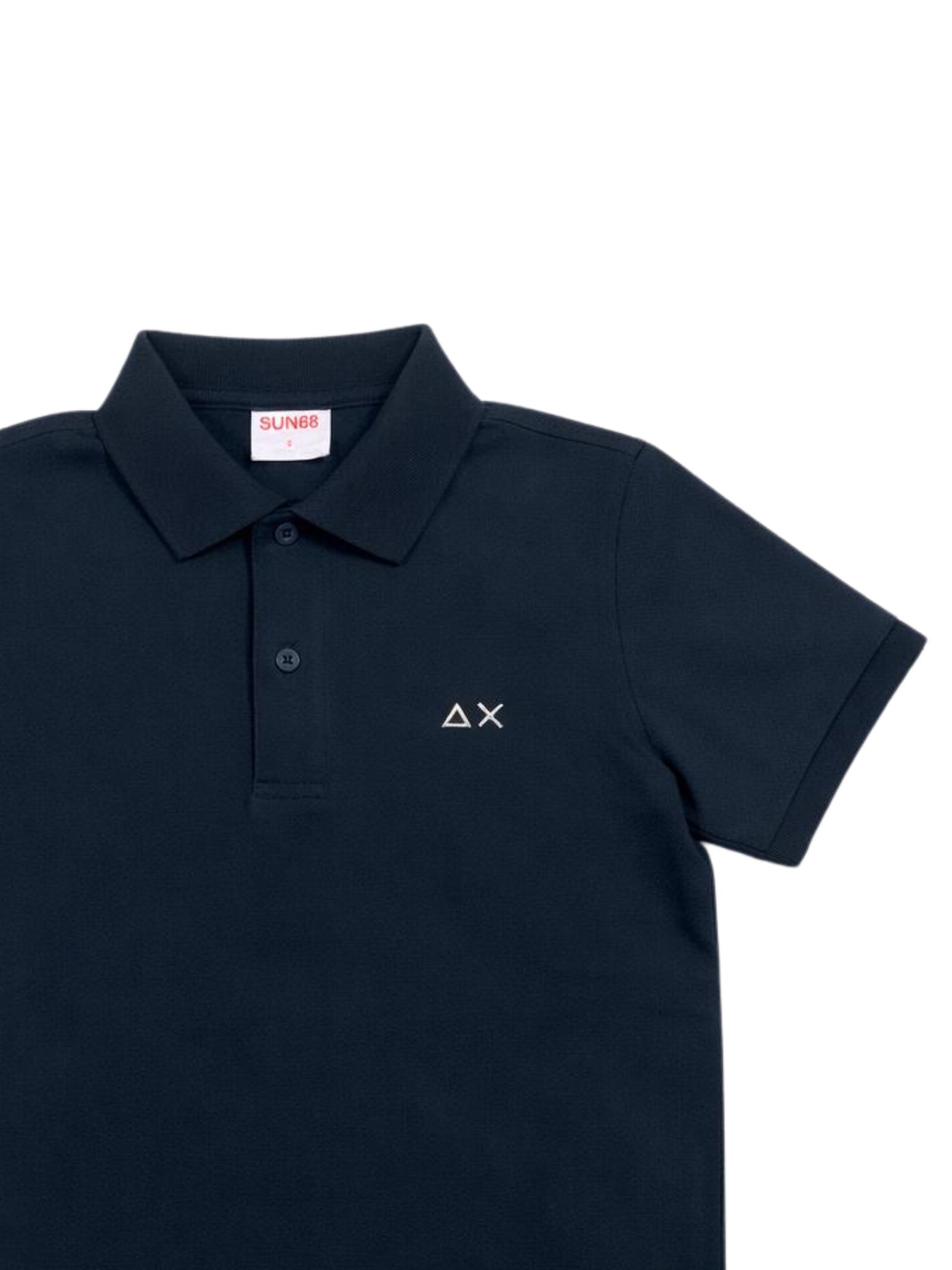 Sun68 Kids polo di colore blu, realizzata in cotone piquet, modello mezza manica, caratterizzata da ricamo logo sul petto a contrasto, orlo dritto, spacchetti laterali, vestibilità regolare. Composizione: 95% cotone 5% elastan