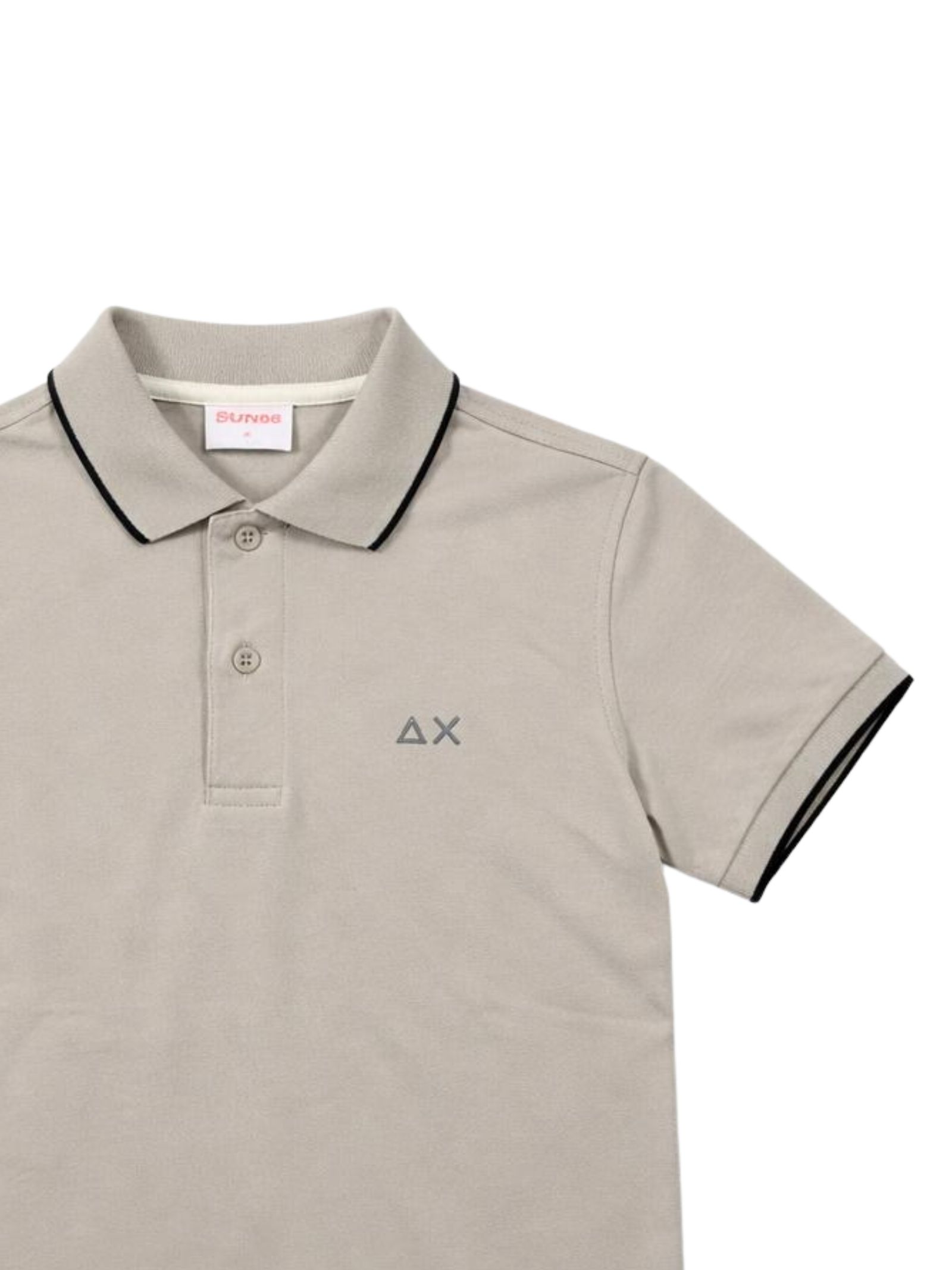Sun68 Kids polo color ghiaccio, realizzata in cotone piquet, dettagli a contrasto, mezza manica, logo ricamato sul petto, orlo dritto, vestibilità regolare. Composizione: 95% cotone 5% elastan