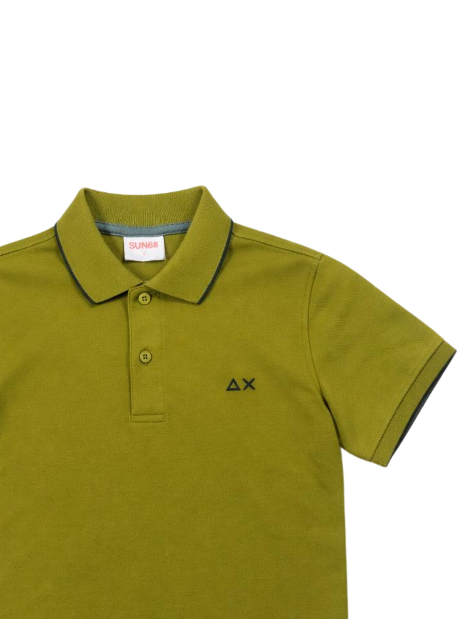Sun68 Kids polo di colore verde chiaro, realizzata in cotone piquet, dettagli a contrasto, mezza manica, logo ricamato sul petto, orlo dritto, vestibilità regolare. Composizione: 95% cotone 5% elastan