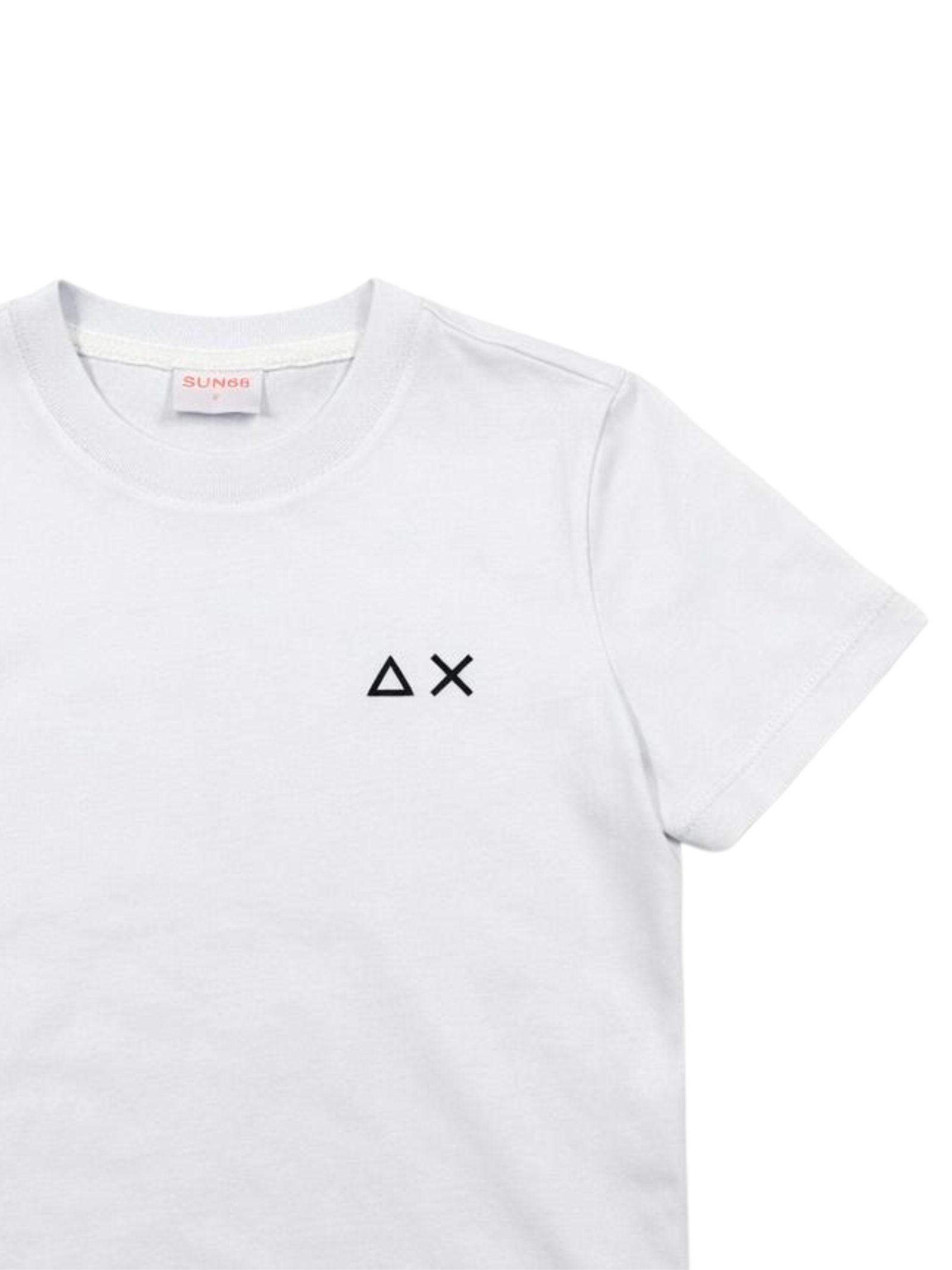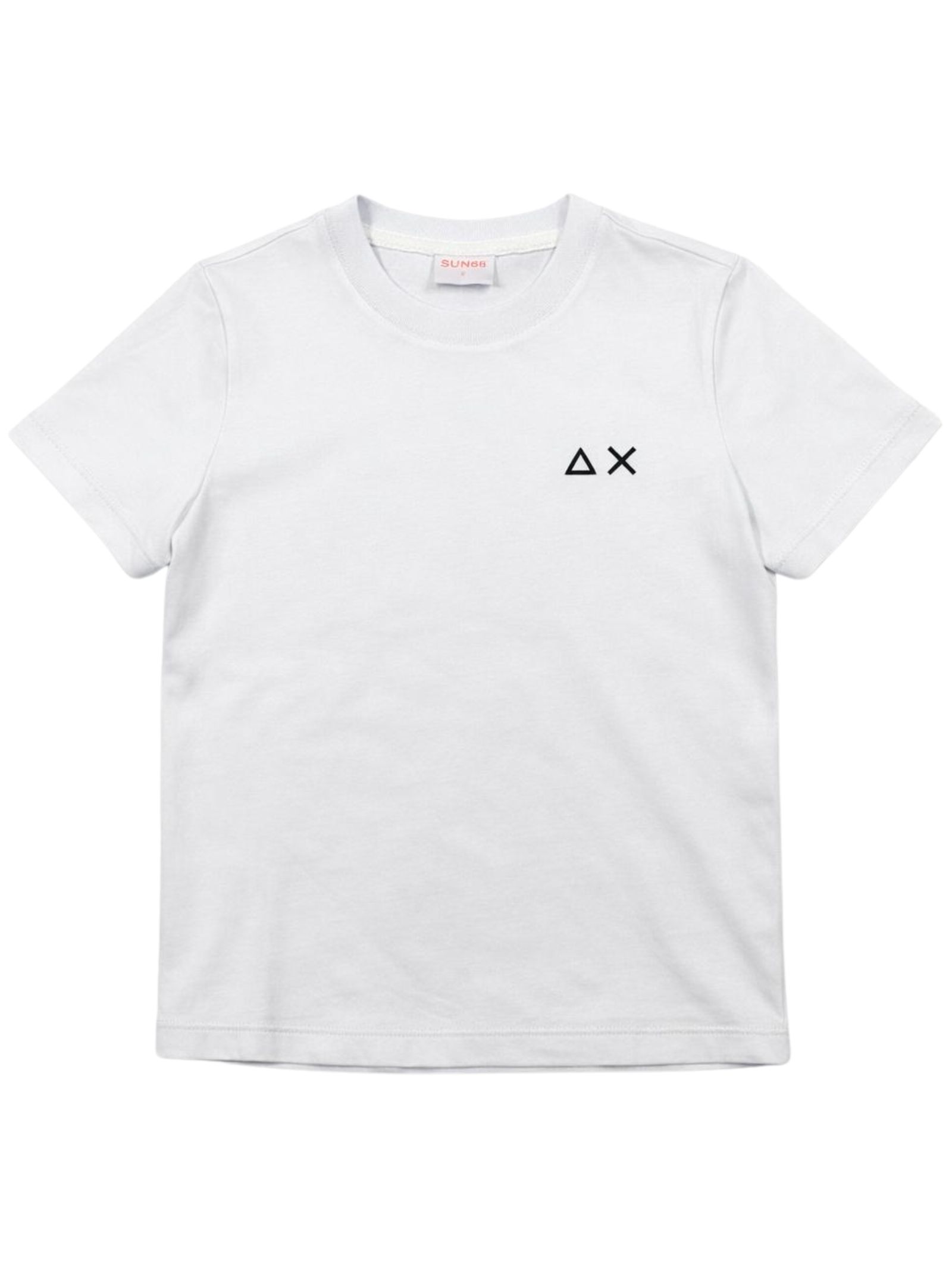 Sun68 Kids t-shirt di colore bianco, modello girocollo, mezza manica, ricamo logo sul petto a contrasto, orlo dritto, vestibilità regolare. Composizione: 100% cotone