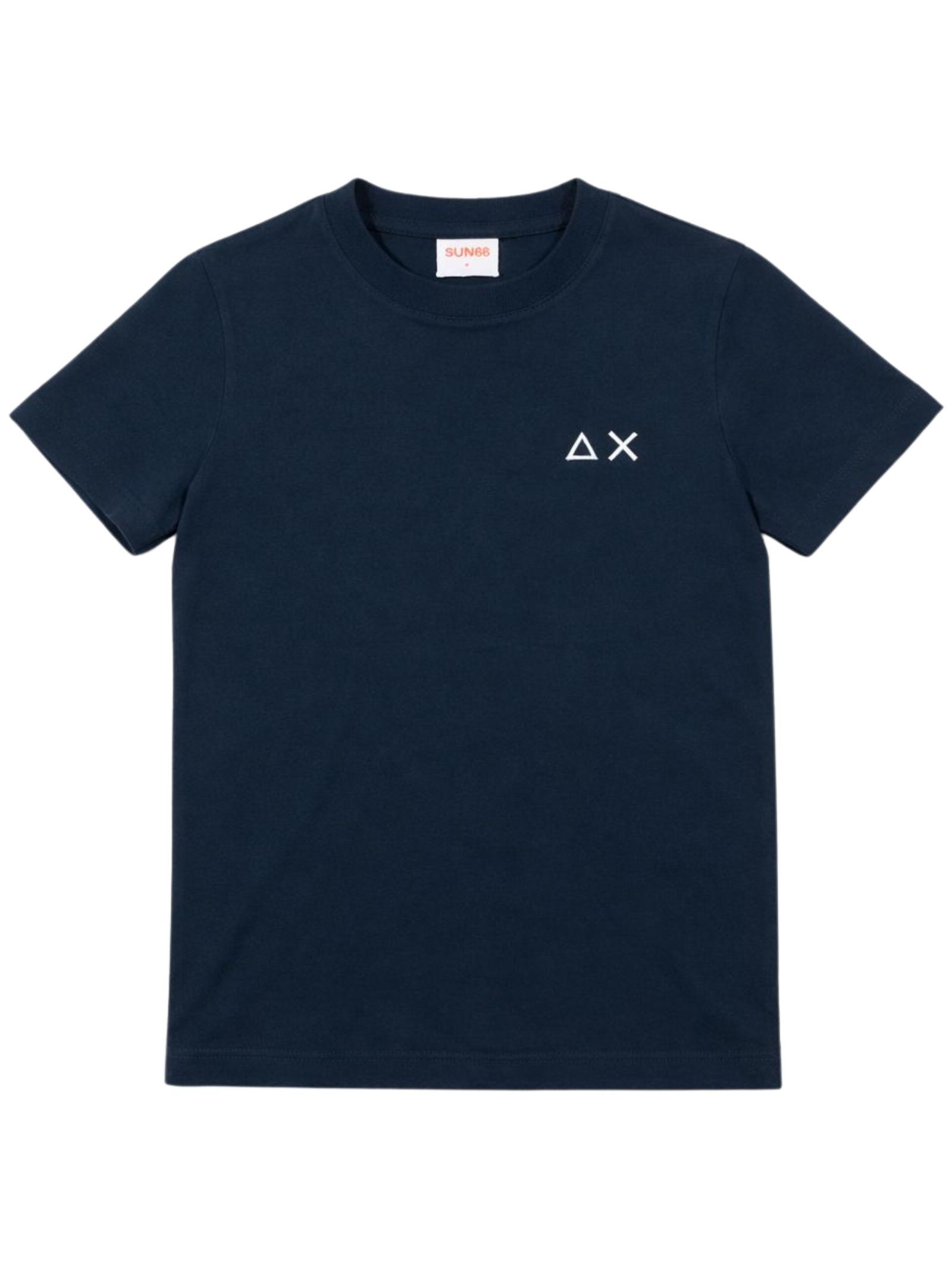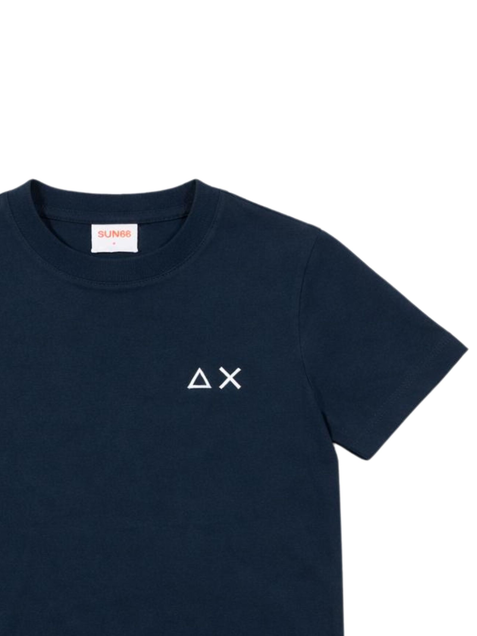 Sun68 Kids t-shirt di colore blu, modello girocollo, mezza manica, ricamo logo sul petto a contrasto, orlo dritto, vestibilità regolare. Composizione: 100% cotone