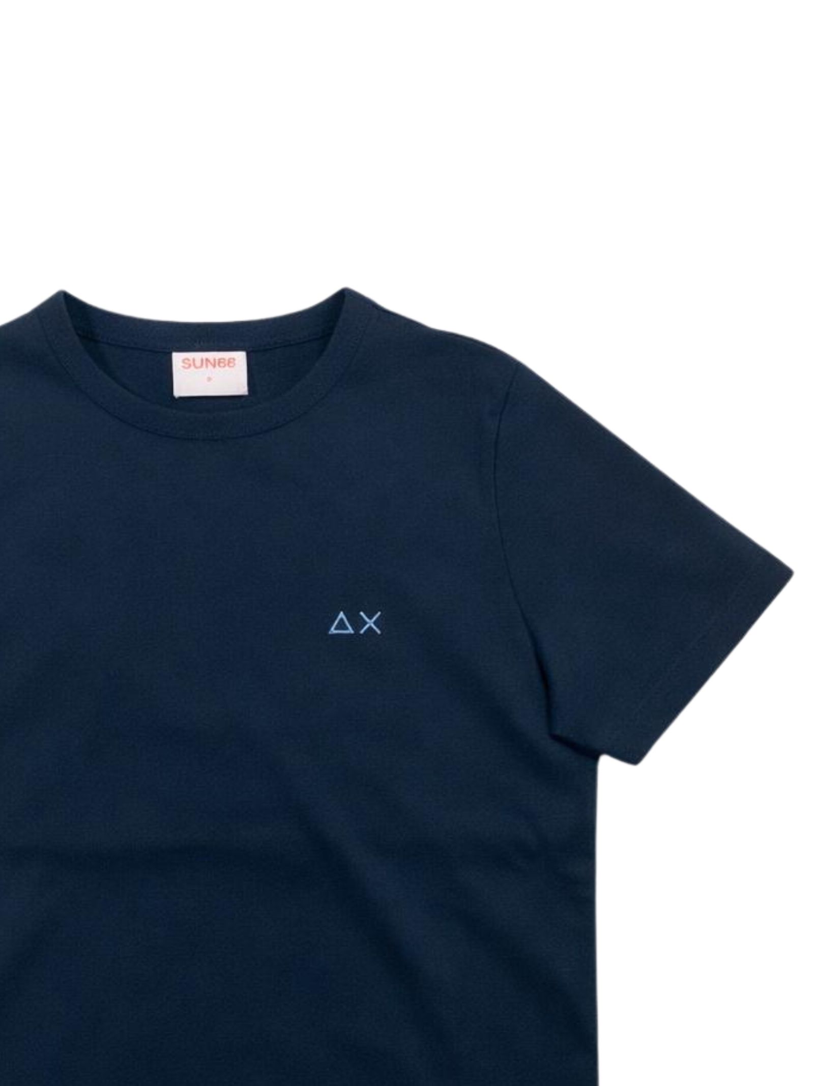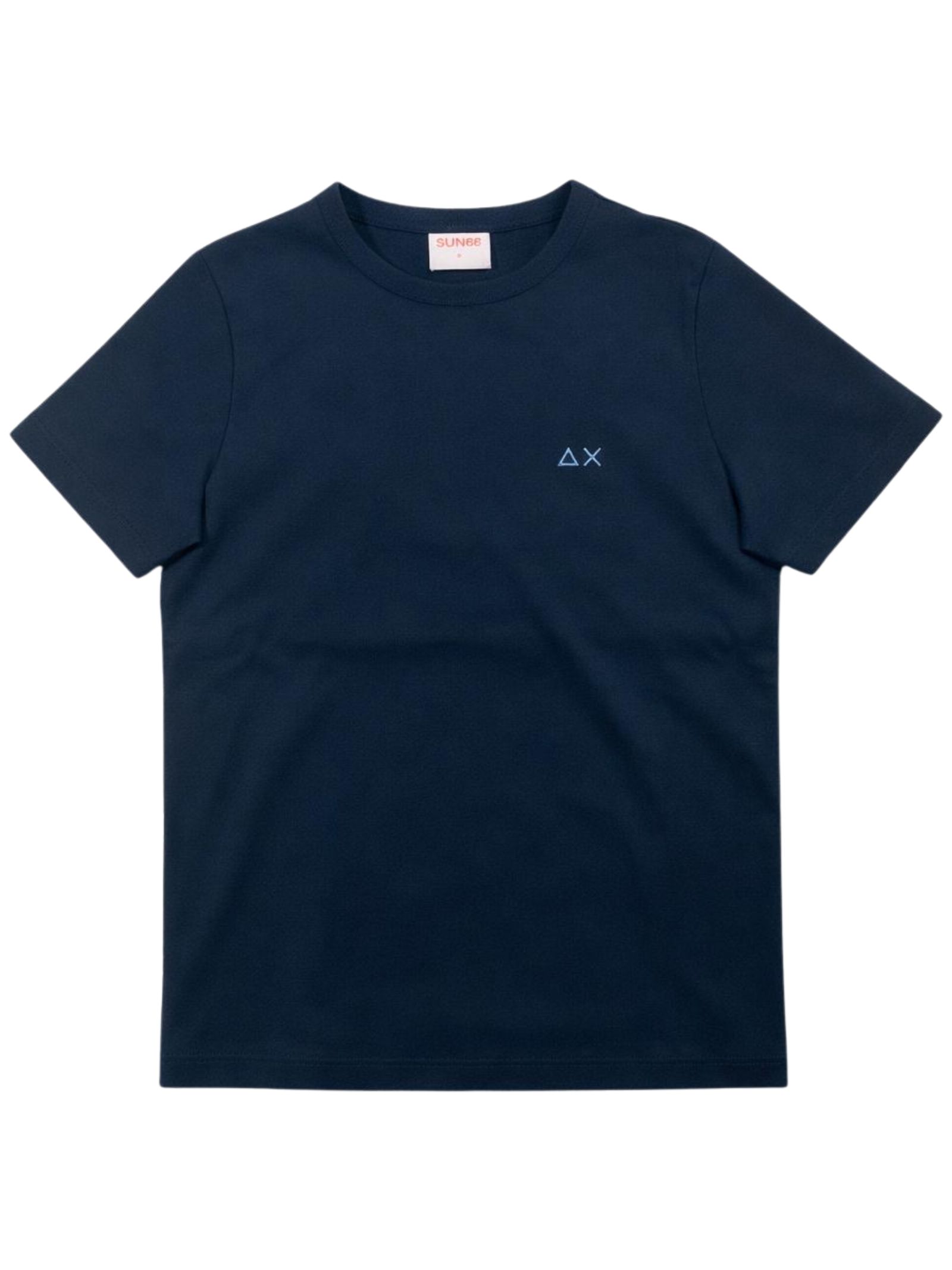 Sun68 Kids t-shirt di colore blu, modello girocollo, mezza manica, ricamo logo sul petto a contrasto, orlo dritto, vestibilità regolare. Composizione: 100% cotone
