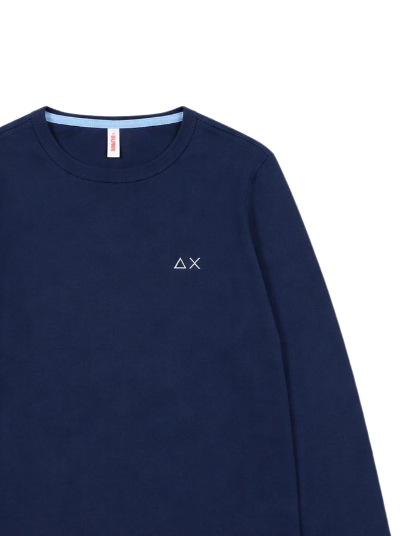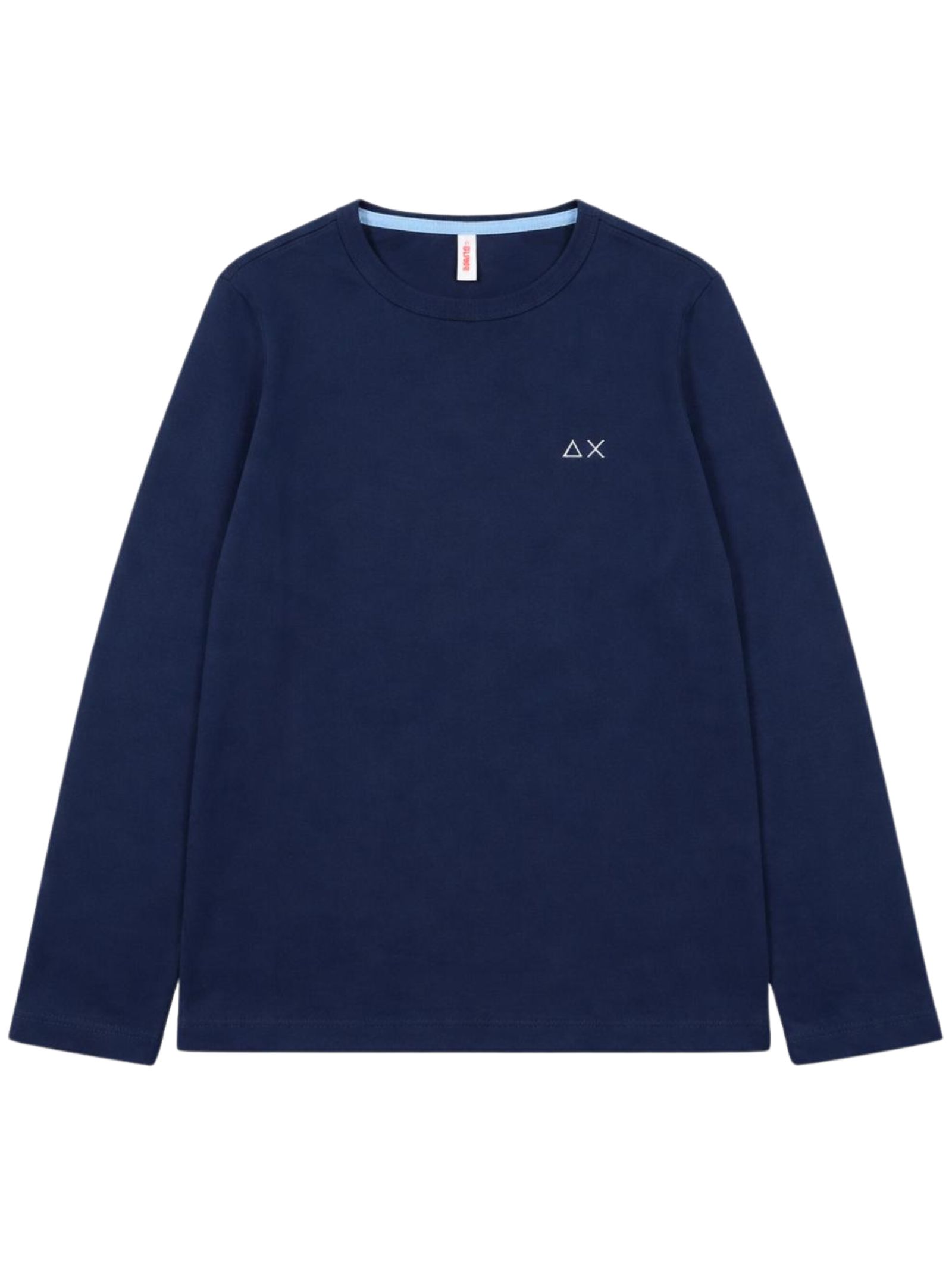 Sun68 Kids t-shirt di colore blu, modello girocollo, manica lunga, caratterizzata da ricamo logo a contrasto sul petto, vestibilità regolare, orlo dritto. Composizione: 100% cotone