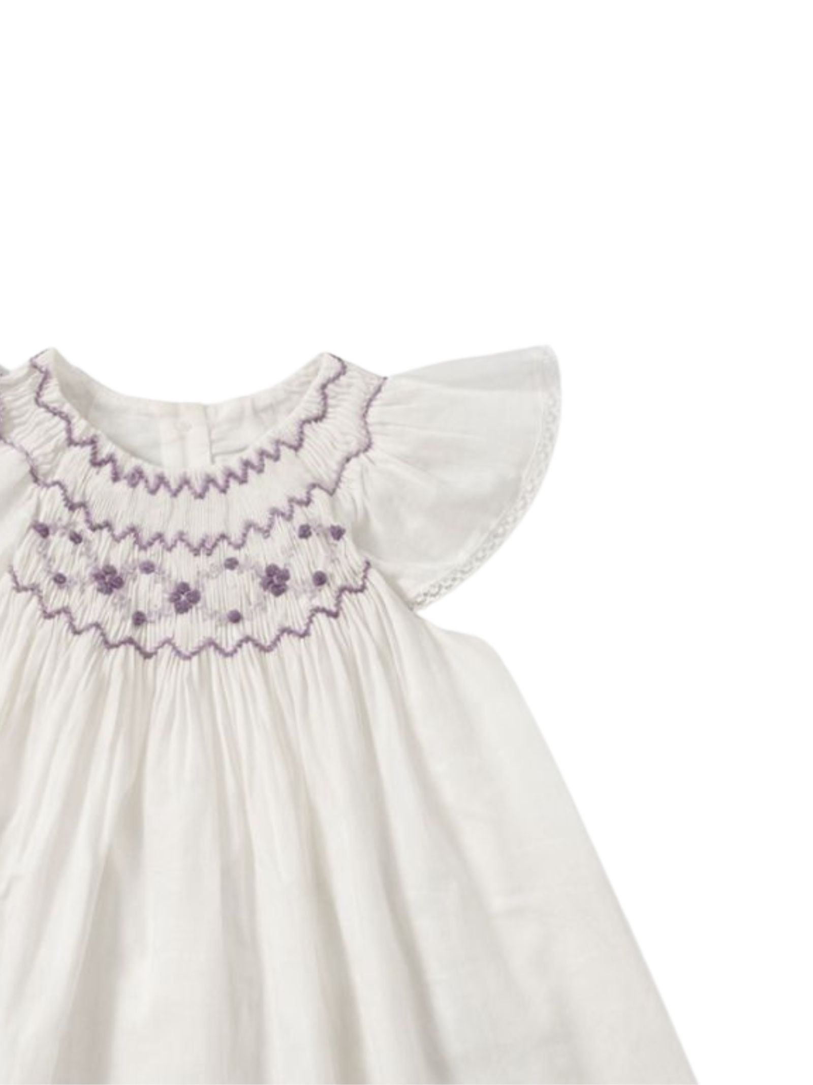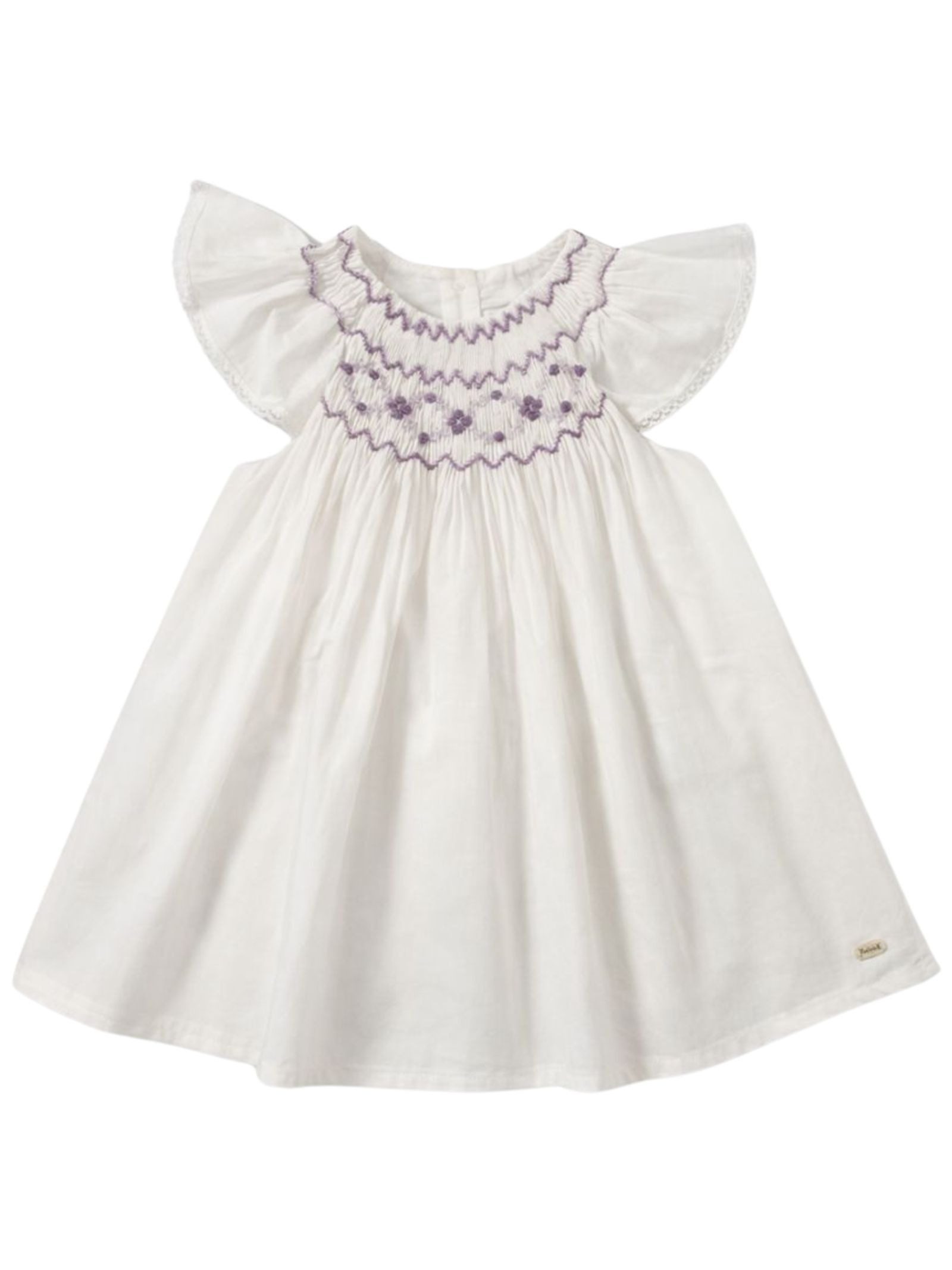 Tartine et Chocolat Kids abito realizzato in cotone di colore bianco, modello girocollo, mezze maniche, design a campana, fodera in cotone, bottoni sul retro. Composizione: 100% cotone