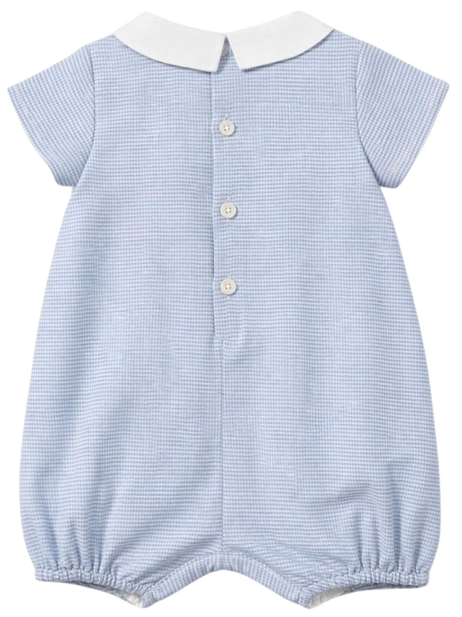 Tartine et Chocolat Kids pagliaccetto di colore azzurro, fantasia a quadrettini, mezza manica, bottoni sul retro, apertura con bottoni a pressione sul cavallo. Composizione: 100% cotone