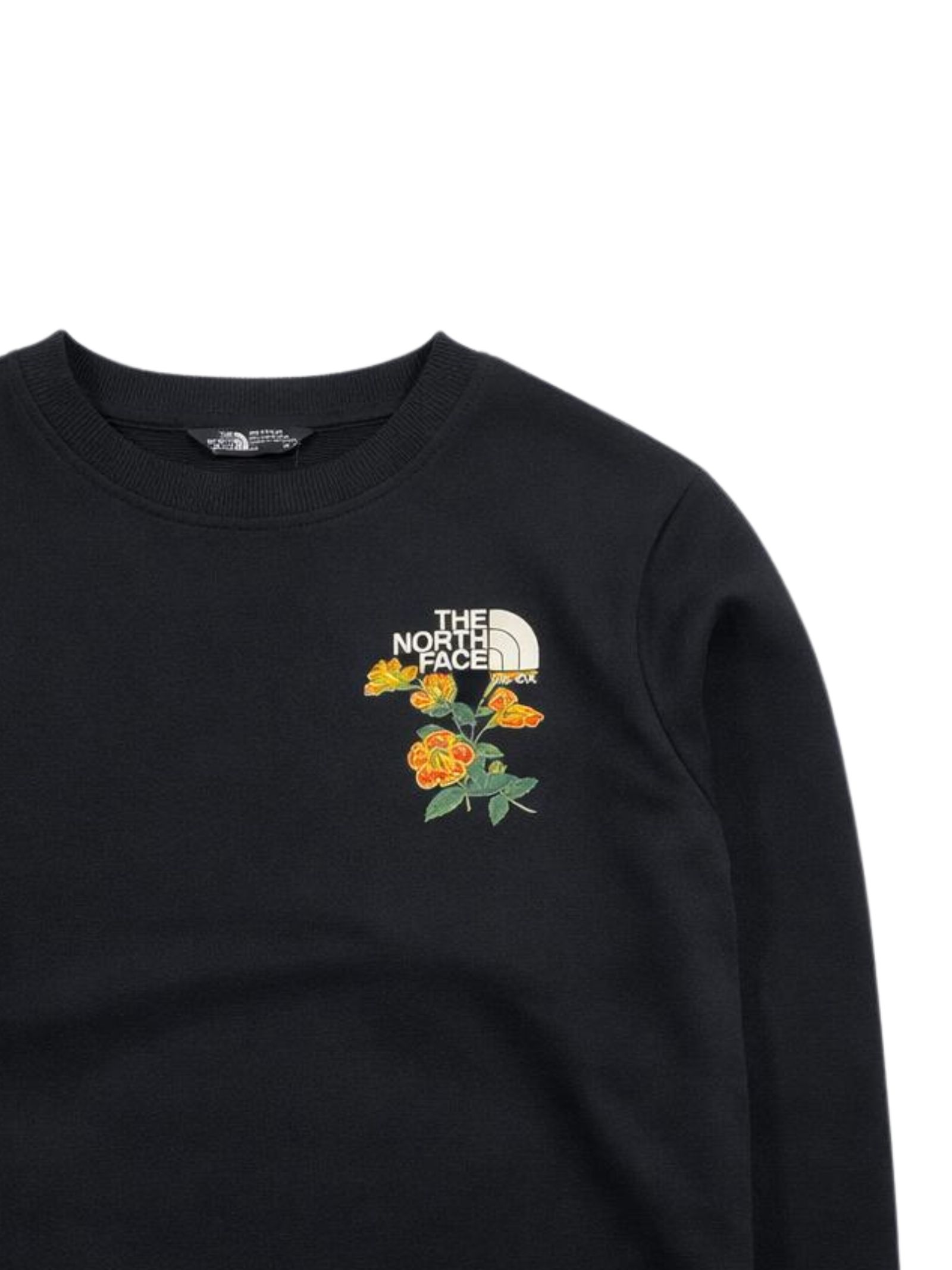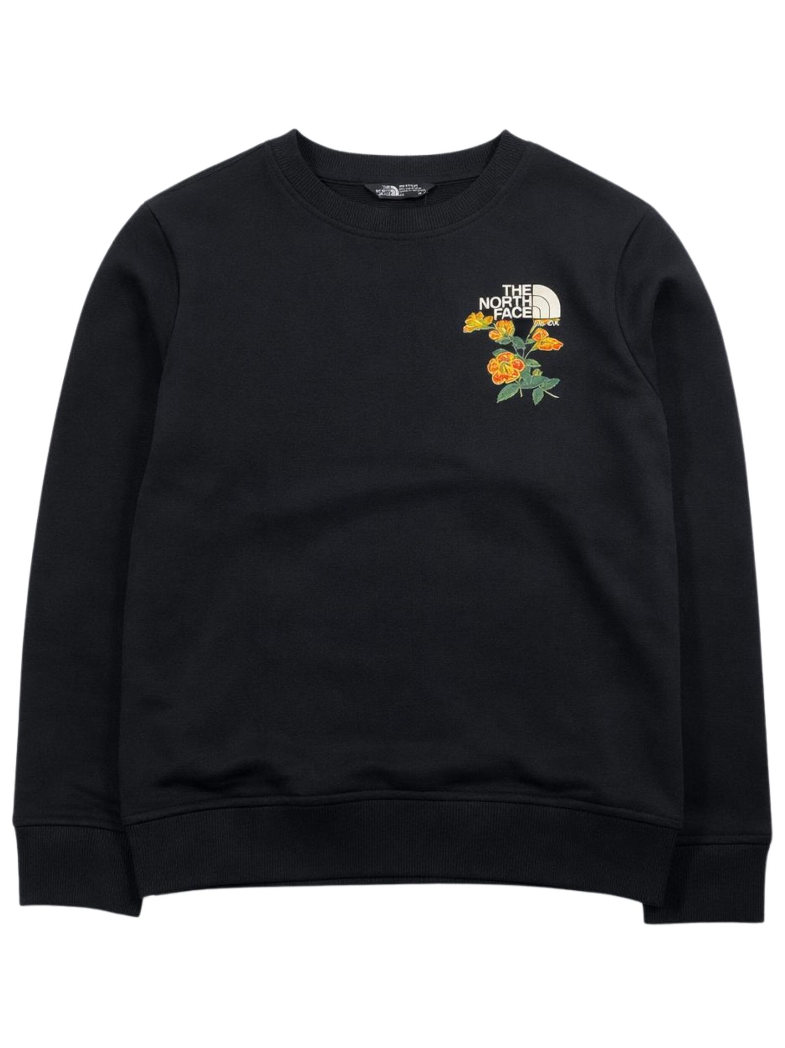 The North Face Kids felpa di colore nero, modello girocollo, manica lunga con polsini a costine, caratterizzata da ricamo logo a contrasto sul petto e stampa logo su entrambi i lati, orlo dritto, vestibilità regolare. Composizione: 68% cotone 32% poliestere