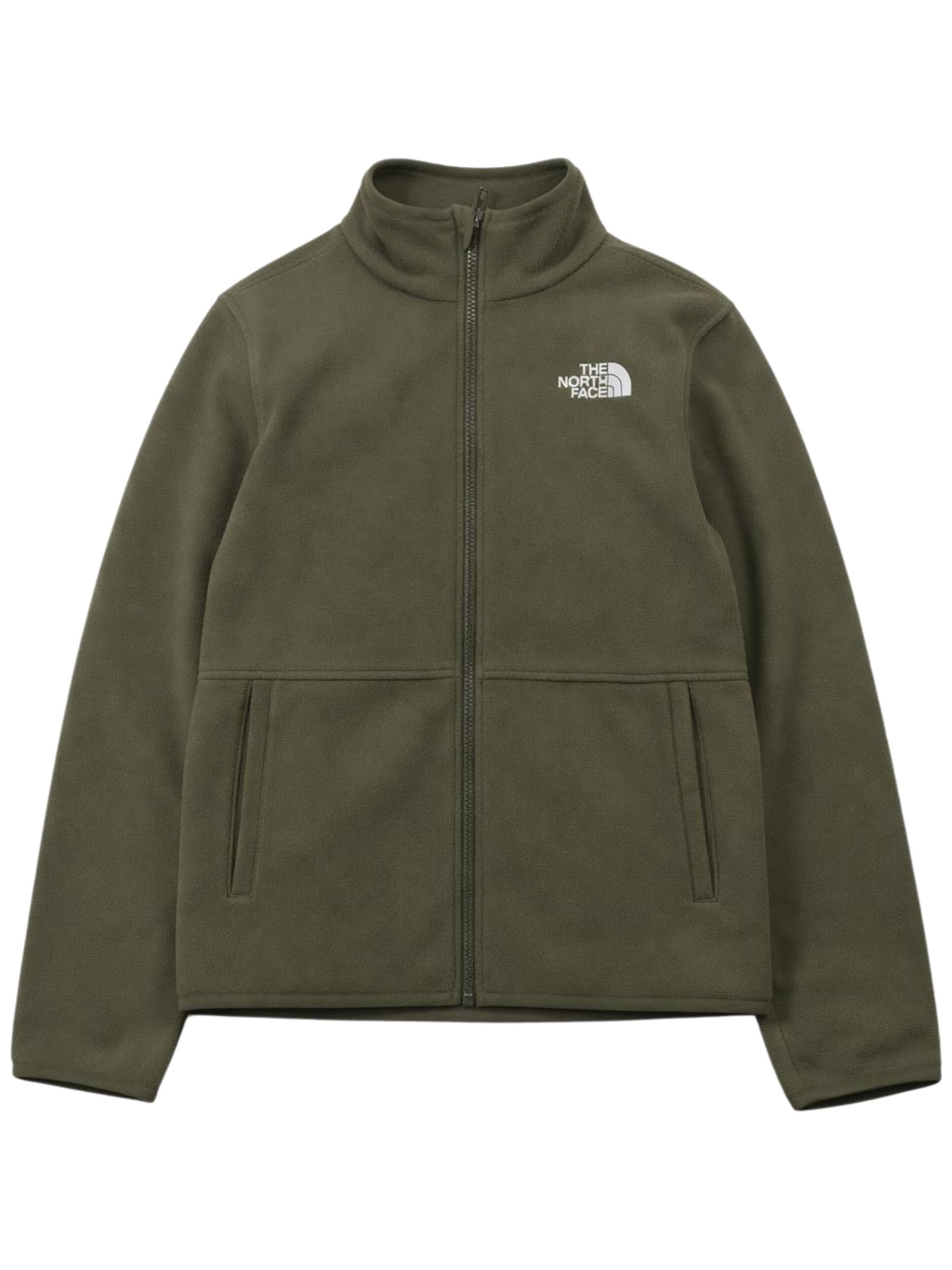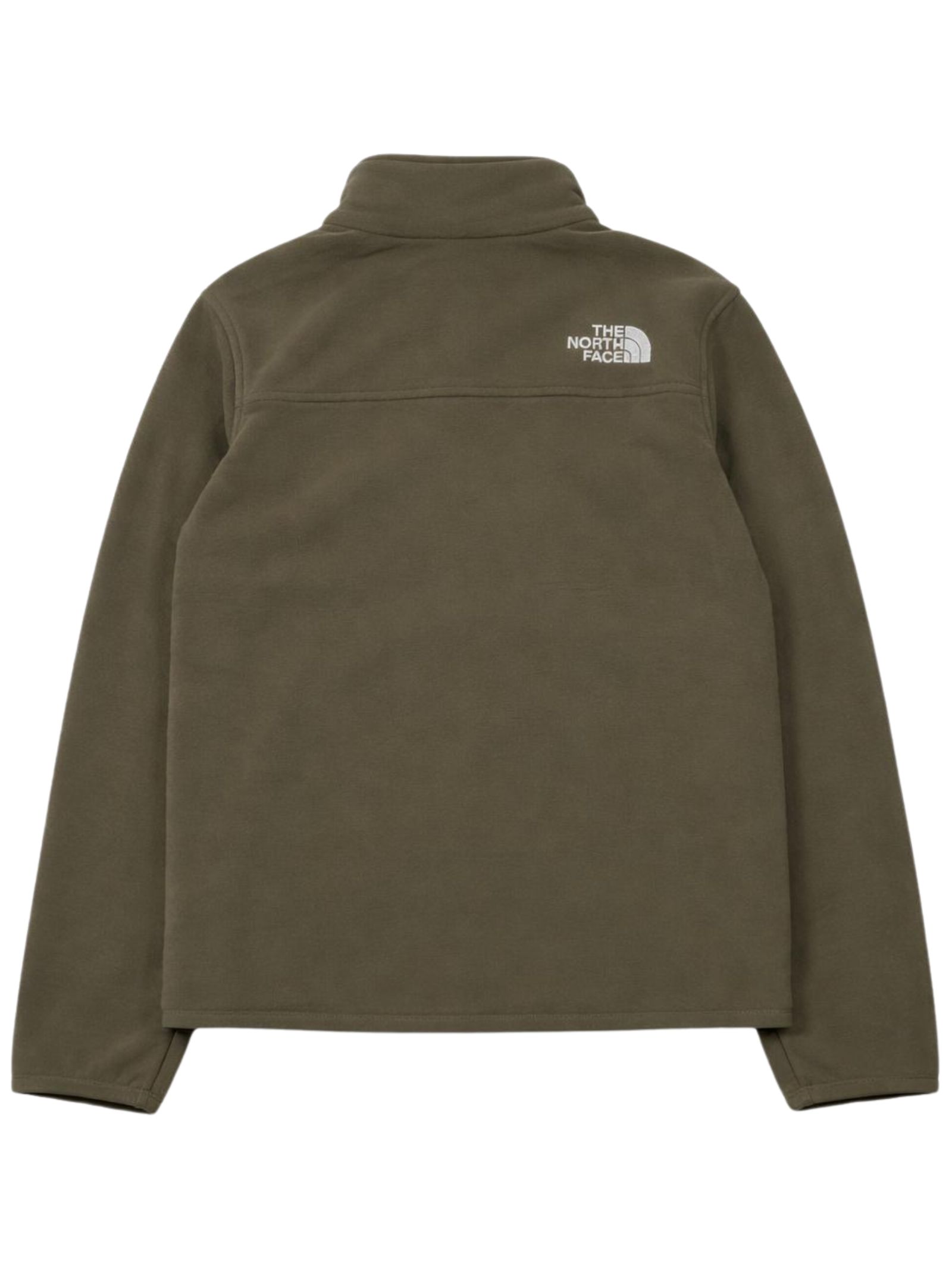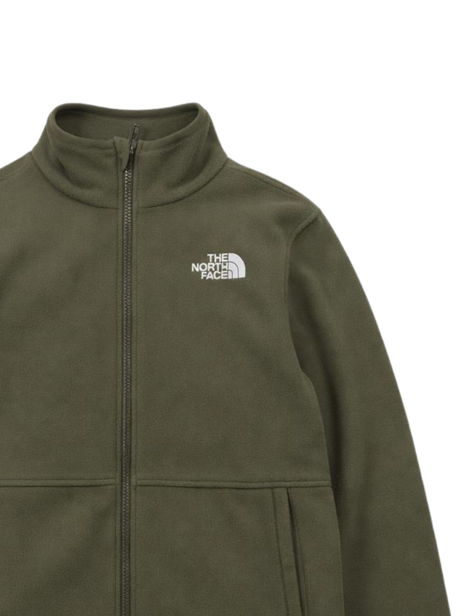 The North Face Kids felpa di colore verde, realizzata in pile, modello con colletto rialzato, zip centrale, due tasche laterali con zip, logo a contrasto ricamato sul petto e sul retro, vestibilità regolare. Composizione: Poliestere 100%