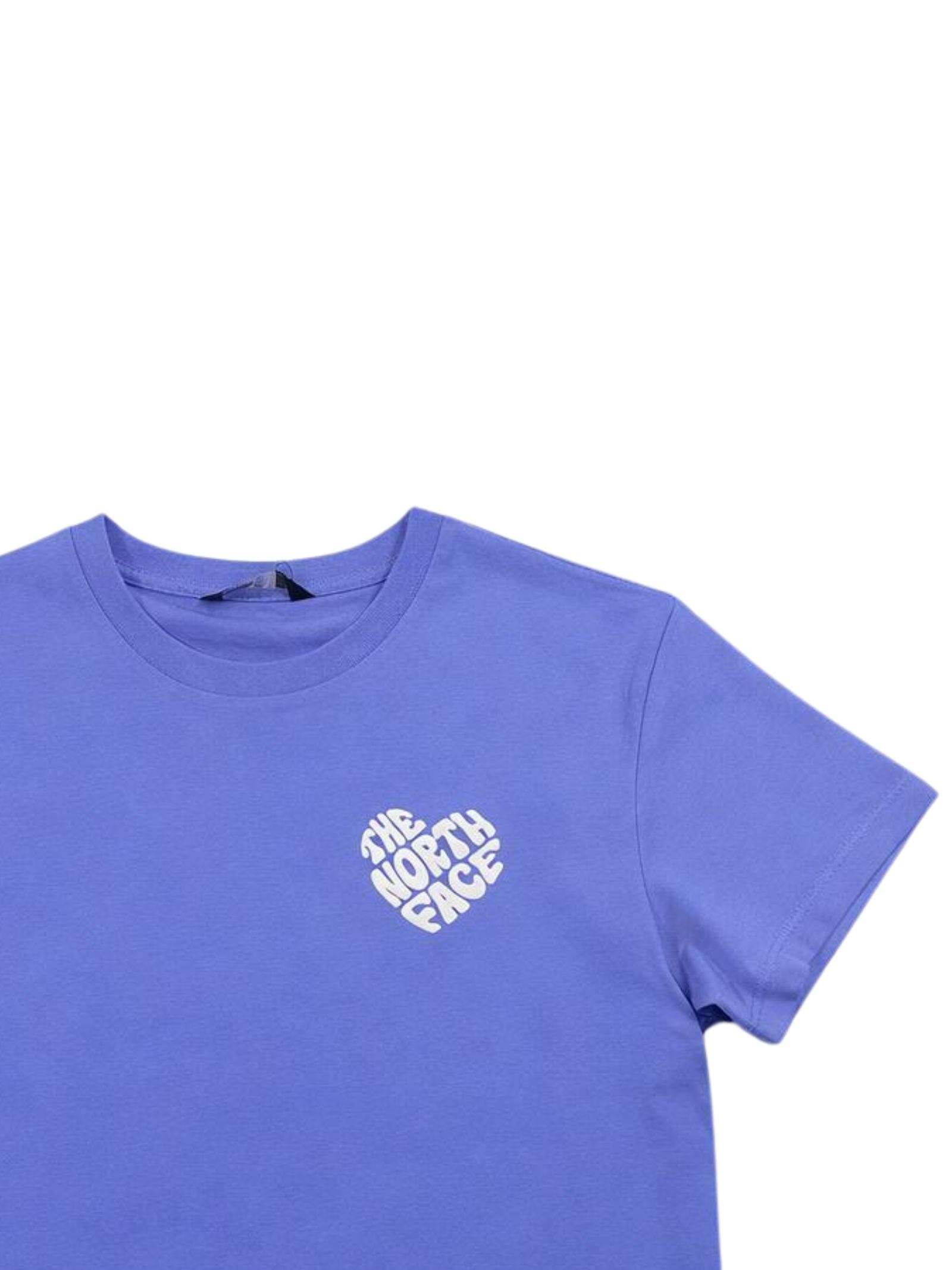 The North Face Kids t-shirt di colore lilla, modello girocollo, stampa logo a contrasto sul petto e sul retro, orlo dritto, vestibilità regolare. Composizione: 100% cotone