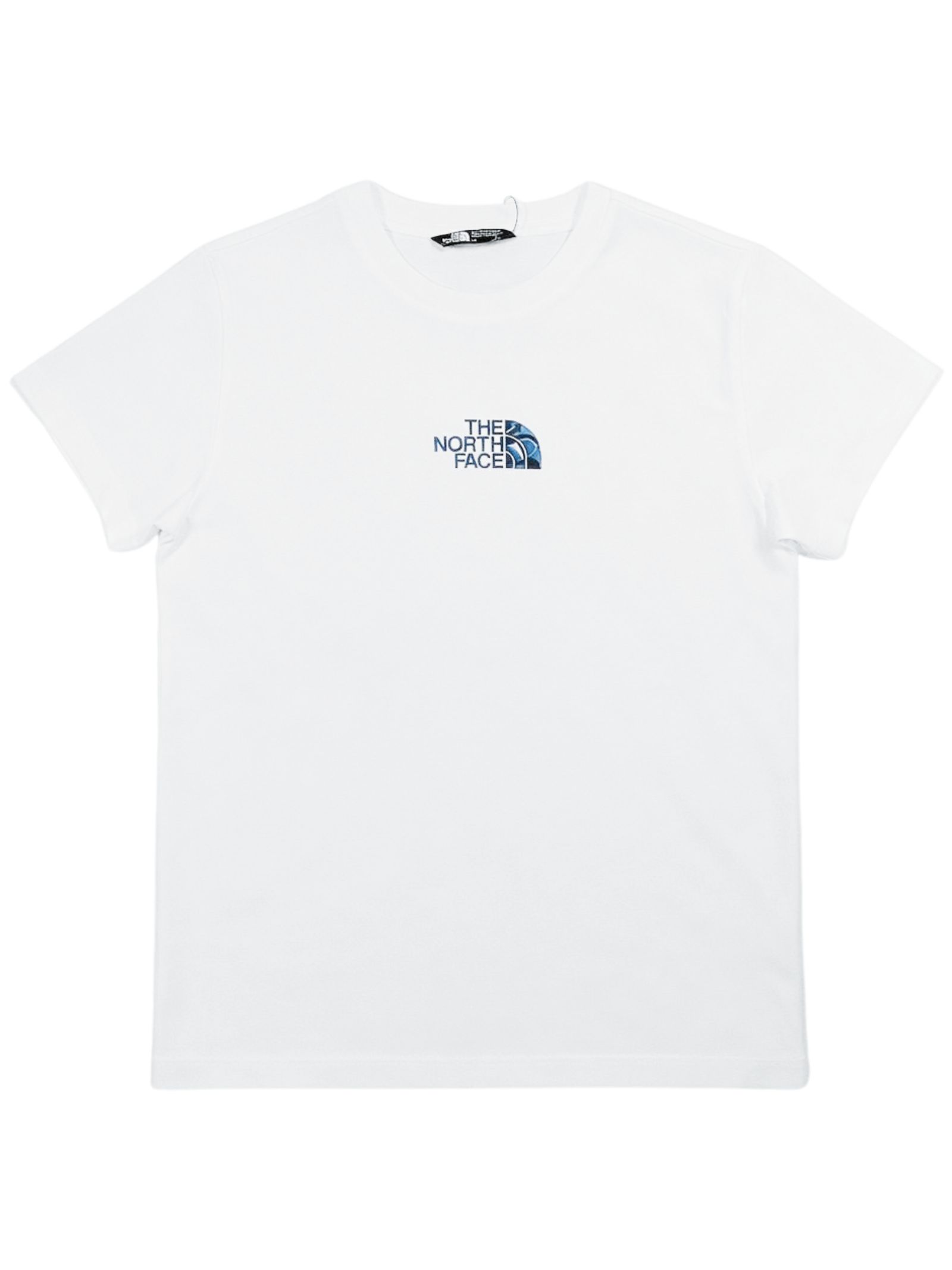 The North Face Kids t-shirt di colore bianco, modello girocollo, stampa logo centrale a contrasto turchese, orlo dritto, vestibilità regolare. Composizione: 100% cotone