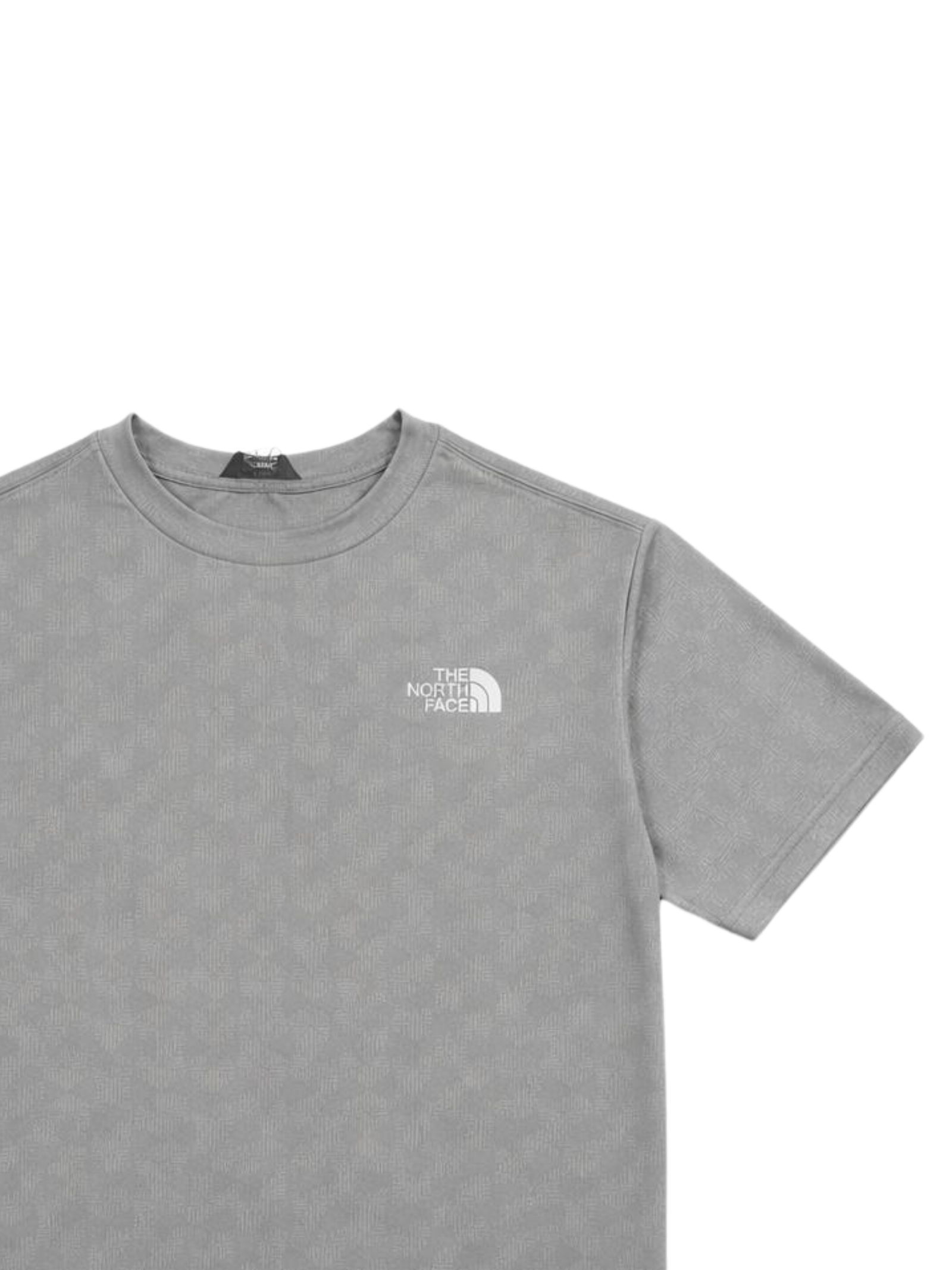 The North Face Kids t-shirt di colore grigio, modello girocollo, stampa logo a contrasto su entrambi i lati, orlo dritto, vestibilità regolare. Composizione: Poliestere 100%
