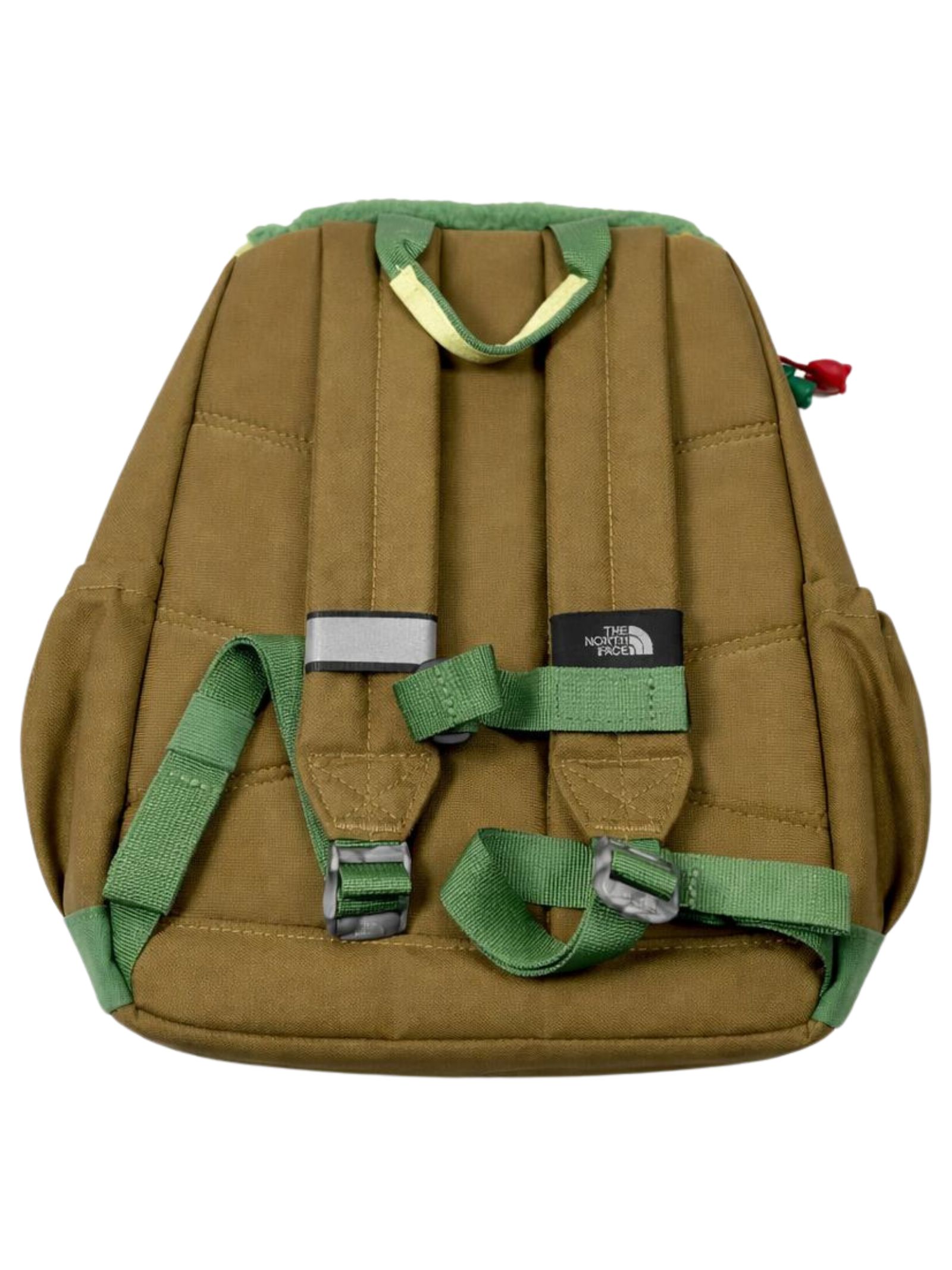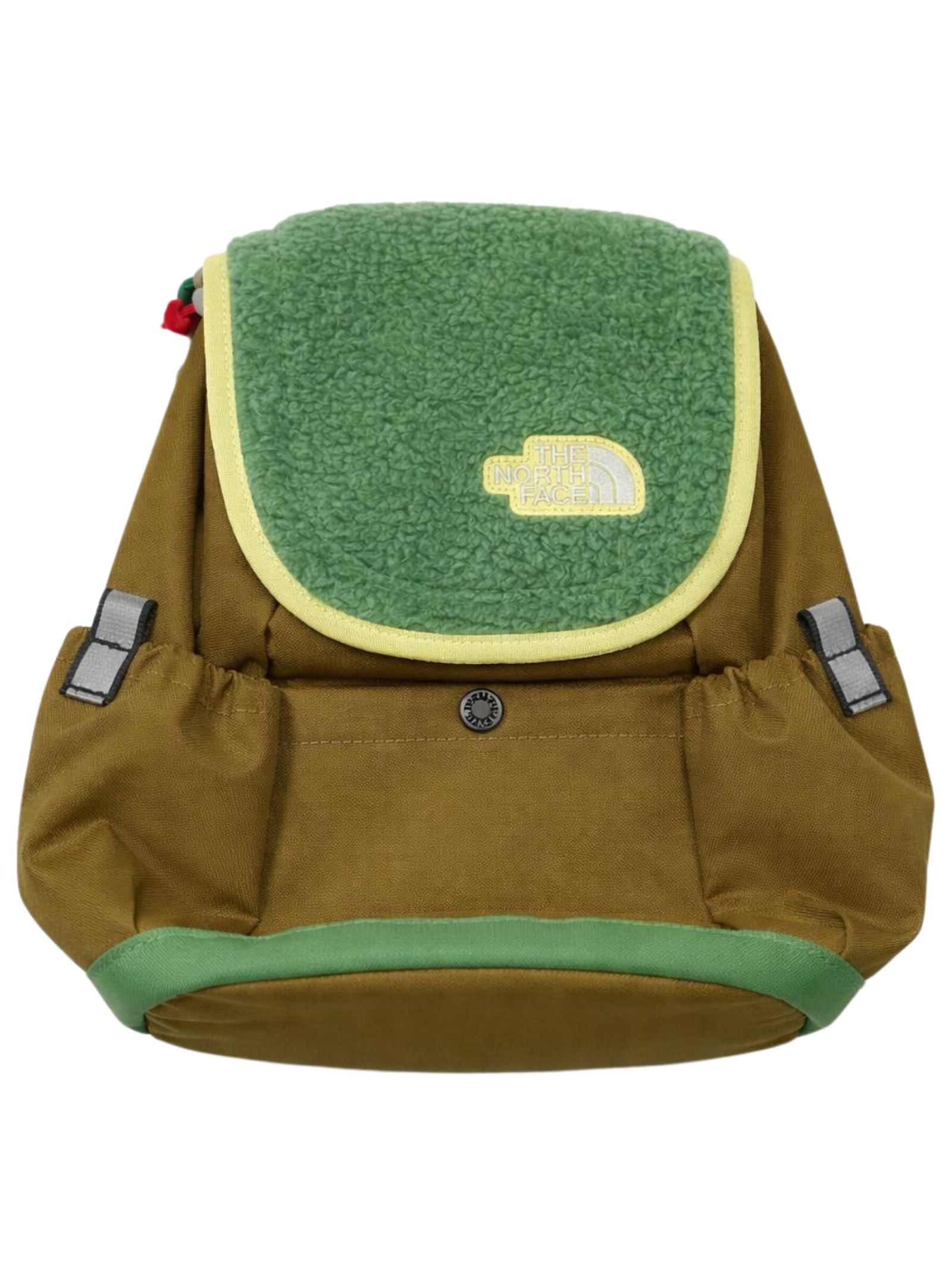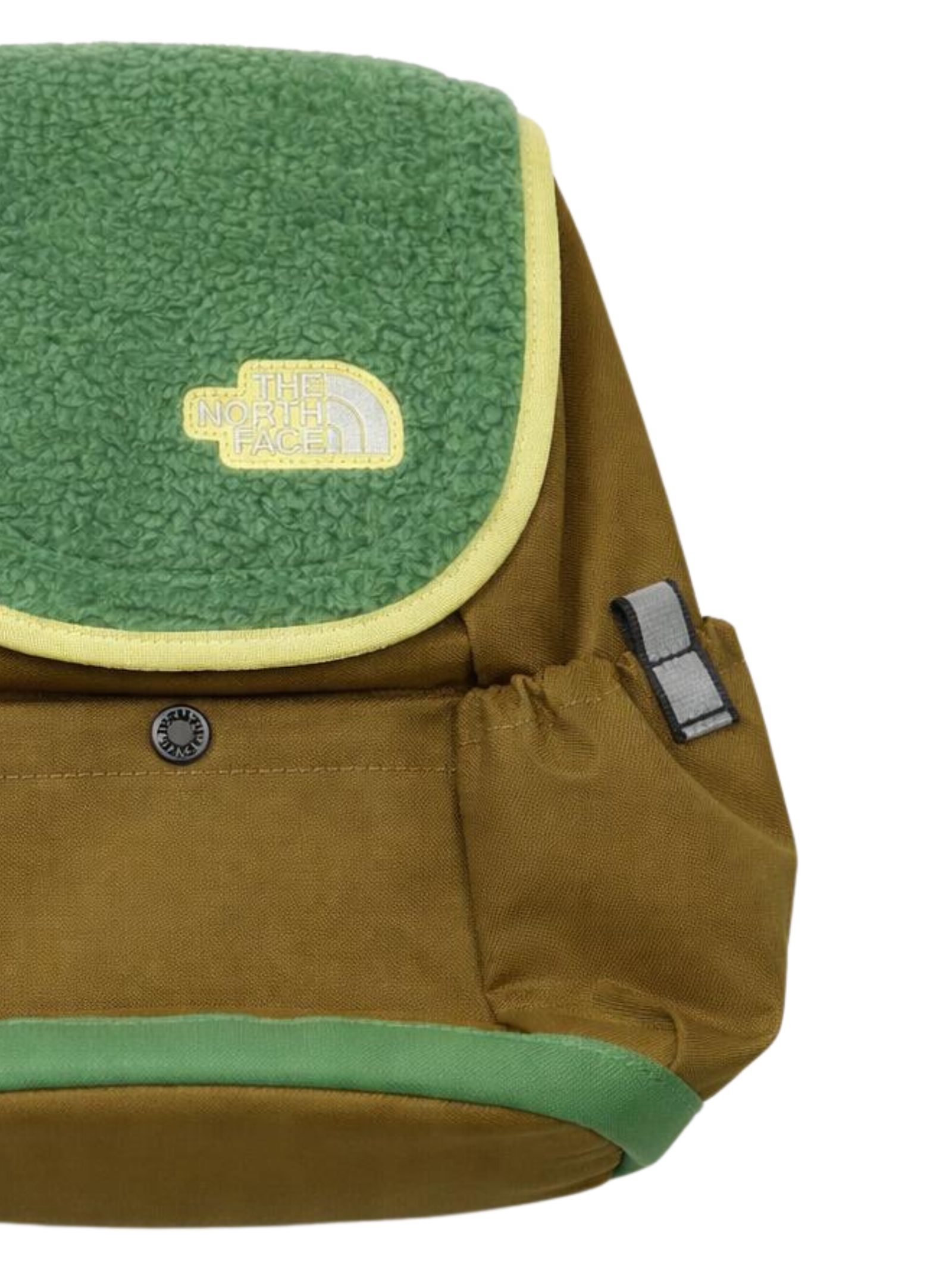 The North Face Kids zaino di colore verde, dettagli a contrasto giallo, realizzato in nylon, inserti in sherpa, modello con bretelle regolabili, tasca frontale con bottone automatico, ricamo logo. Composizione: Poliestere 100%