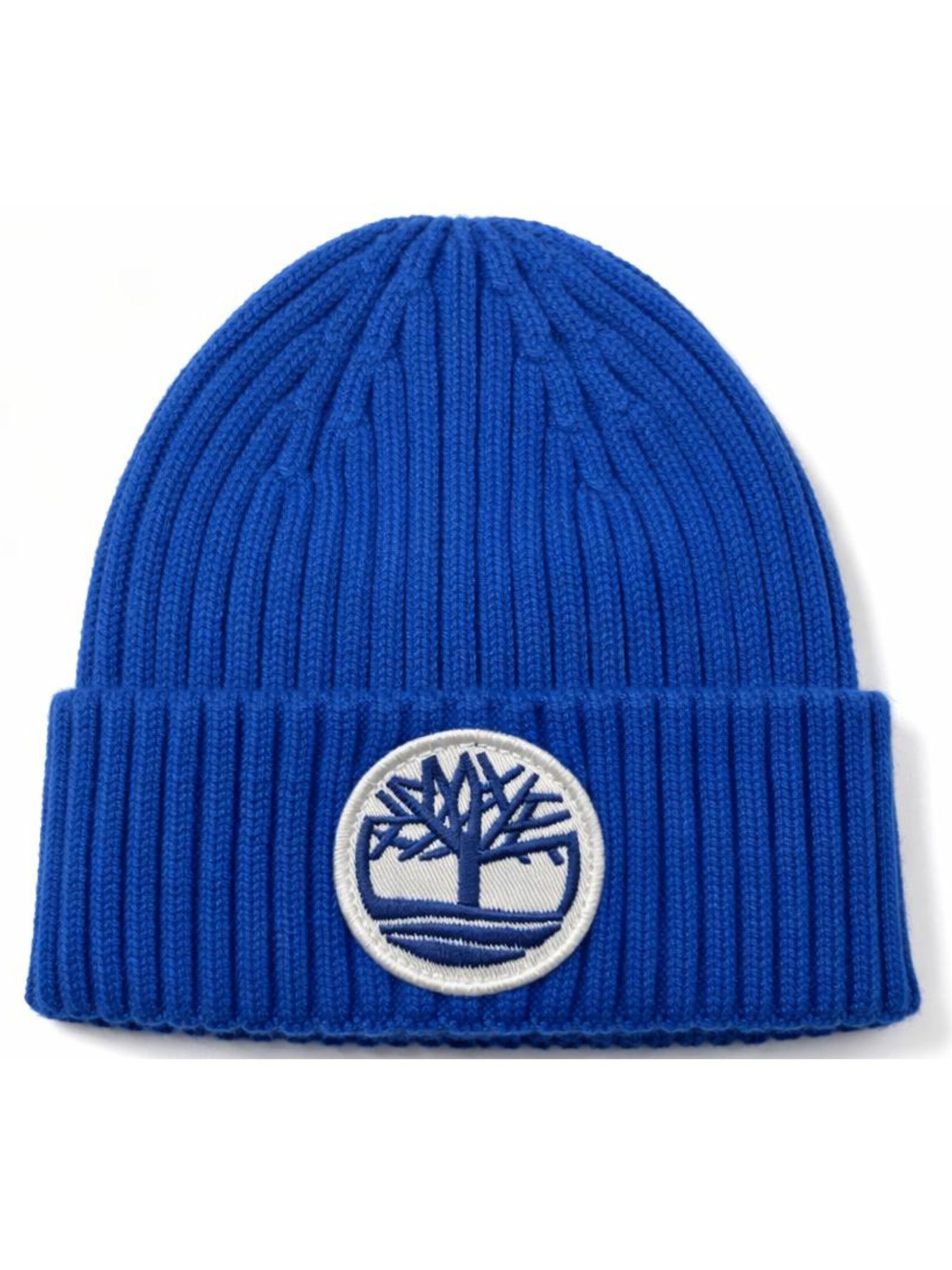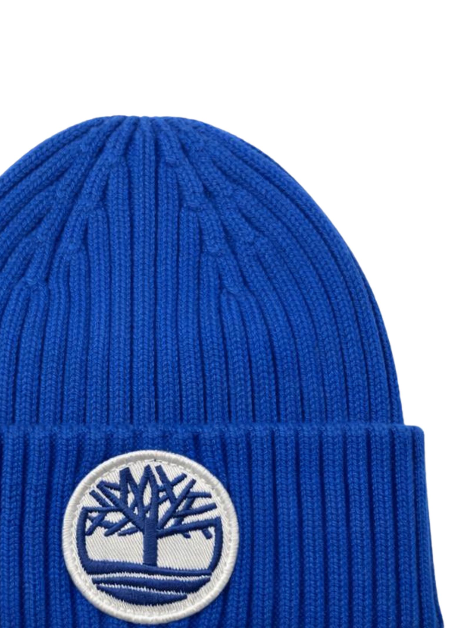 Timberland Kids cappello di colore blu elettrico, realizzato in morbida maglia a costine, modello a cuffia con risvolto, applicazione centrale patch con logo a contrasto, design aderente. Composizione: 46% acrilica 31% poliestere 23% poliammide