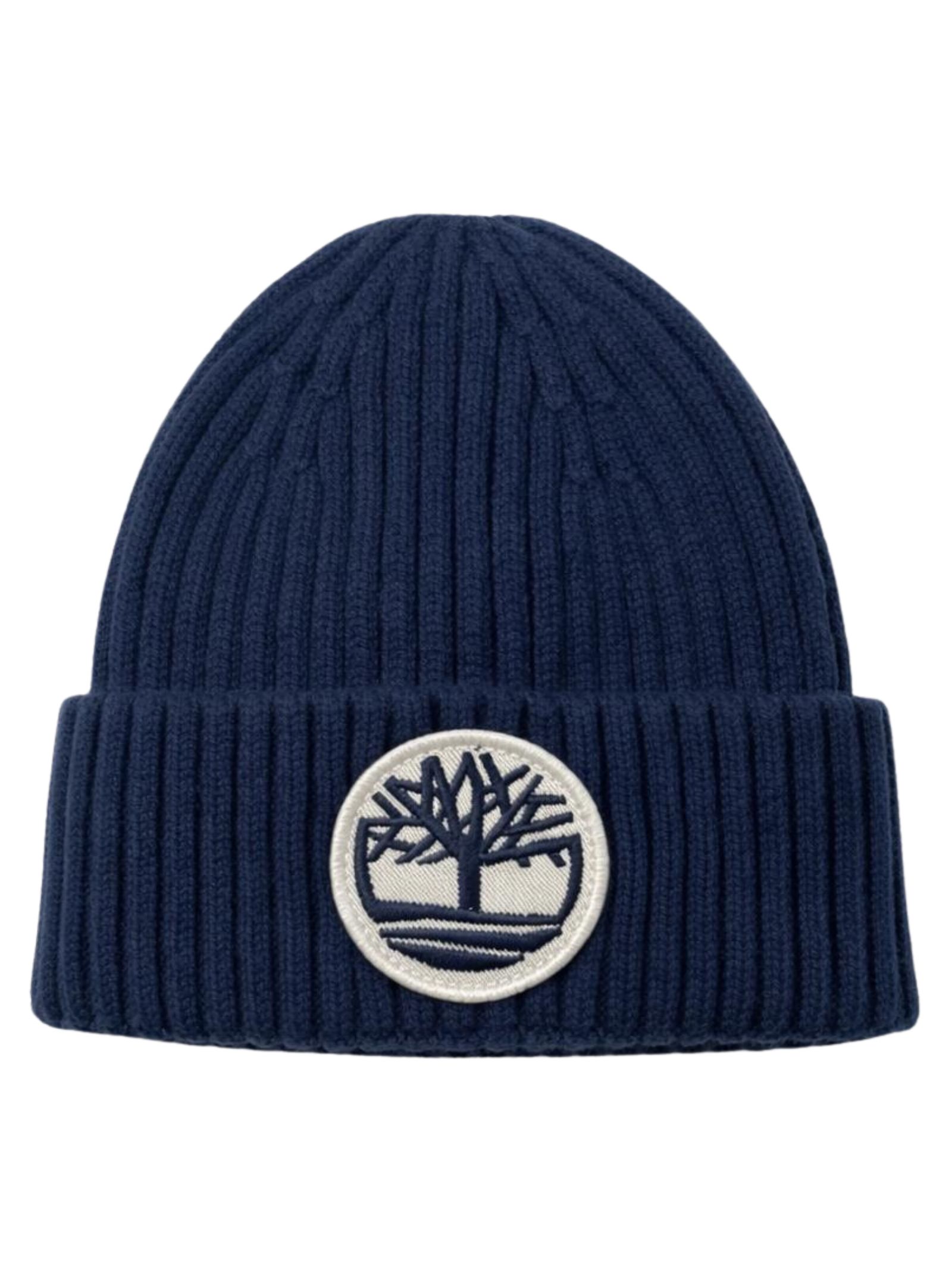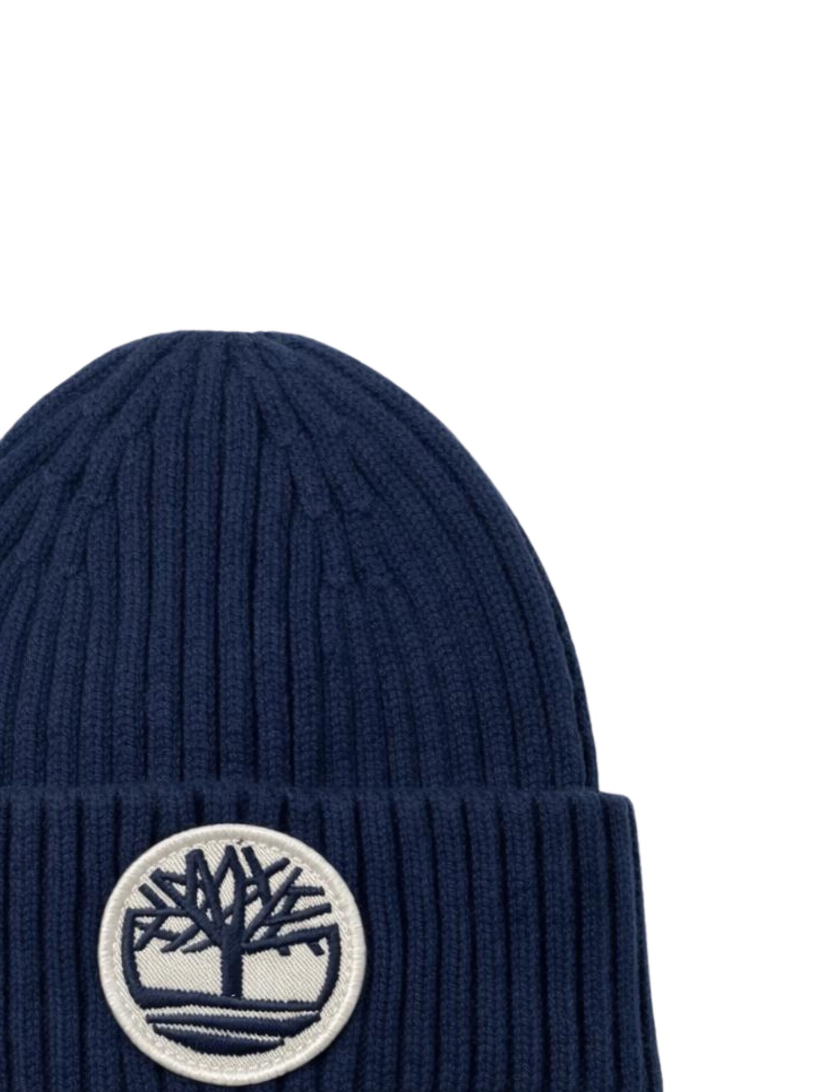 Timberland Kids cappello di colore blu, realizzato in morbida maglia a costine, modello a cuffia con risvolto, applicazione centrale patch con logo a contrasto, design aderente. Composizione: 46% acrilica 31% poliestere 23% poliammide