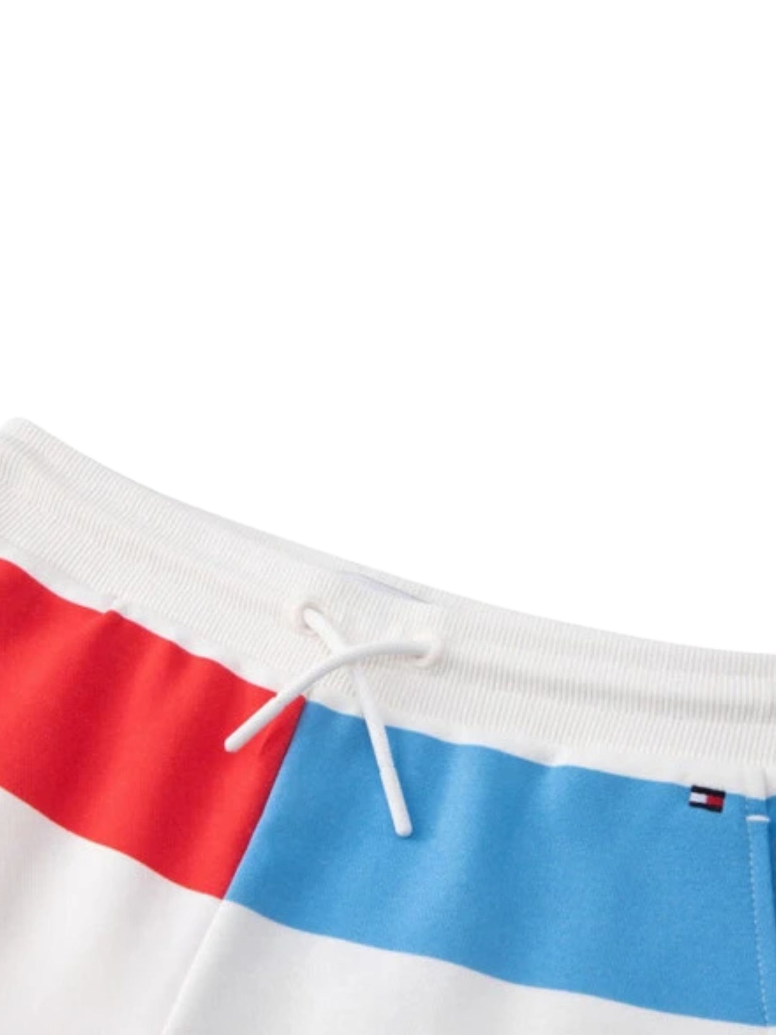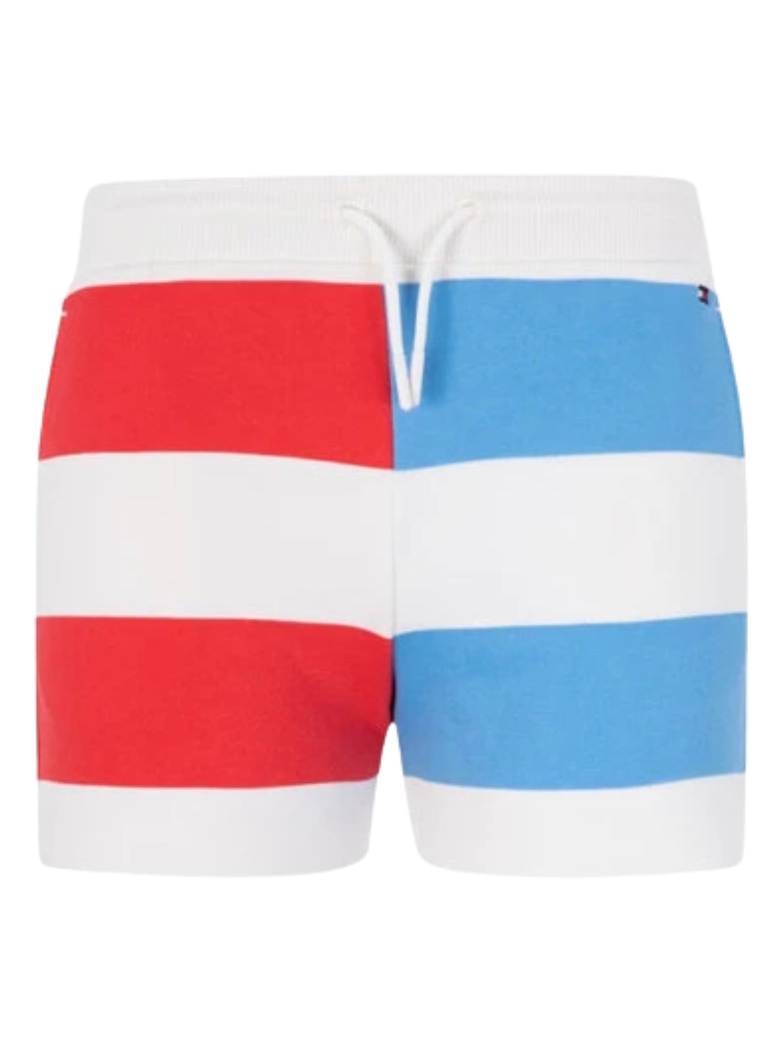 Tommy Hilfiger Kids shorts di colore bianco, block color a contrasto rosso/azzurro, modello con vita elasticizzata e coulisse, due tasche laterali, vestibilità regolare. Composizione: 87% cotone 13% poliestere