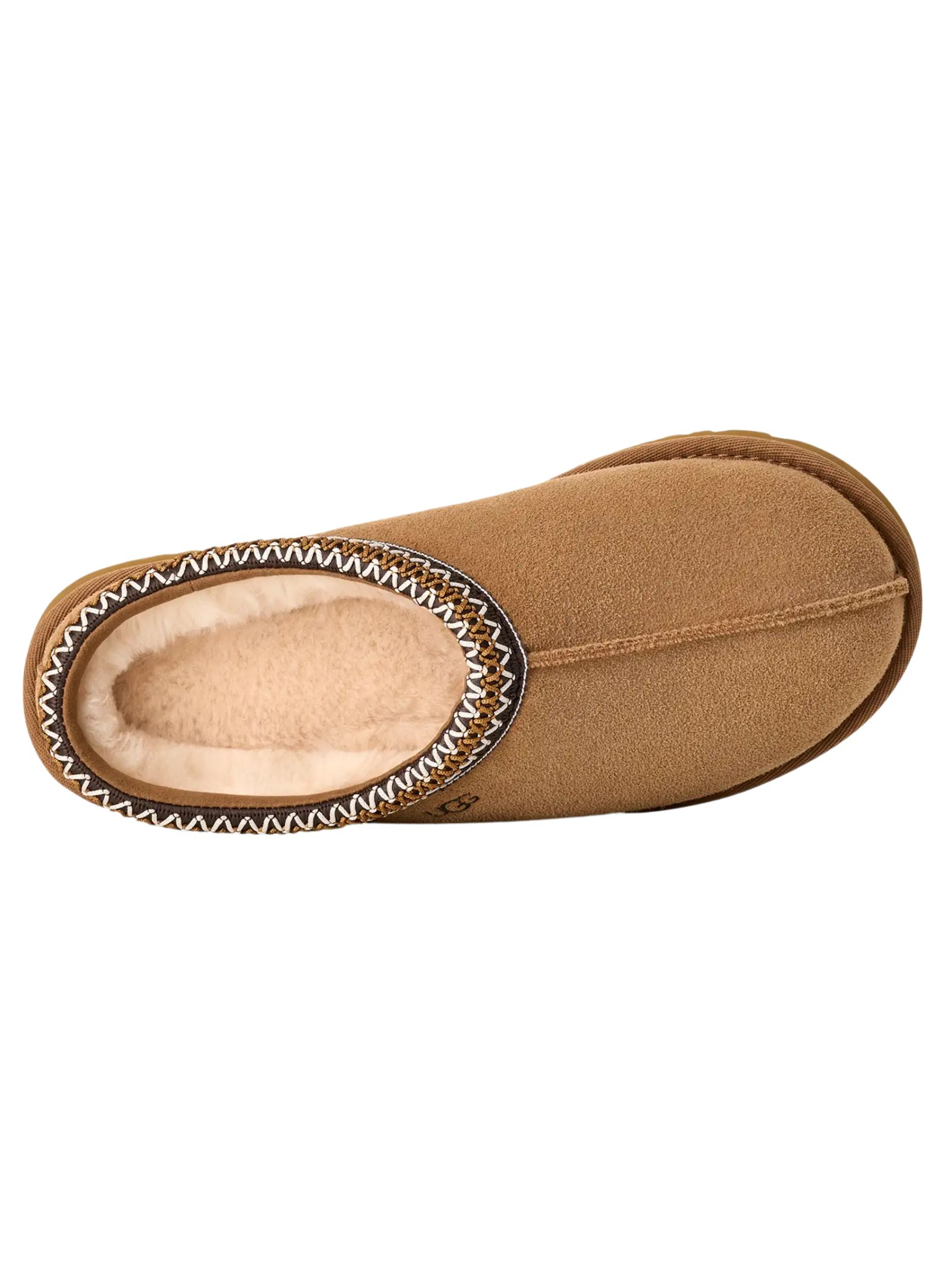 Ciabatta Tasman UGG di colore cammello (chestnut) per tutte le occasioni dotate della stessa suola leggera e durevole dello stivale Classic. Questo pratico modello slip on è foderato in morbida lana naturale ed è realizzato in soffice pelle scamosciata con una treccia ricamata. Pelle scamosciata, Tasman braid, Fodera in montone, Soletta in lana UGGpure, Suola Treadlite by UGG, Bordo in nylon. Questo prodotto è realizzato con vera pelliccia di pecora o agnello. Pelliccia proveniente da Australia, Irlanda, Regno Unito o Stati Uniti. Trattamento e tintura artificiali. Prodotto realizzato in Vietnam.