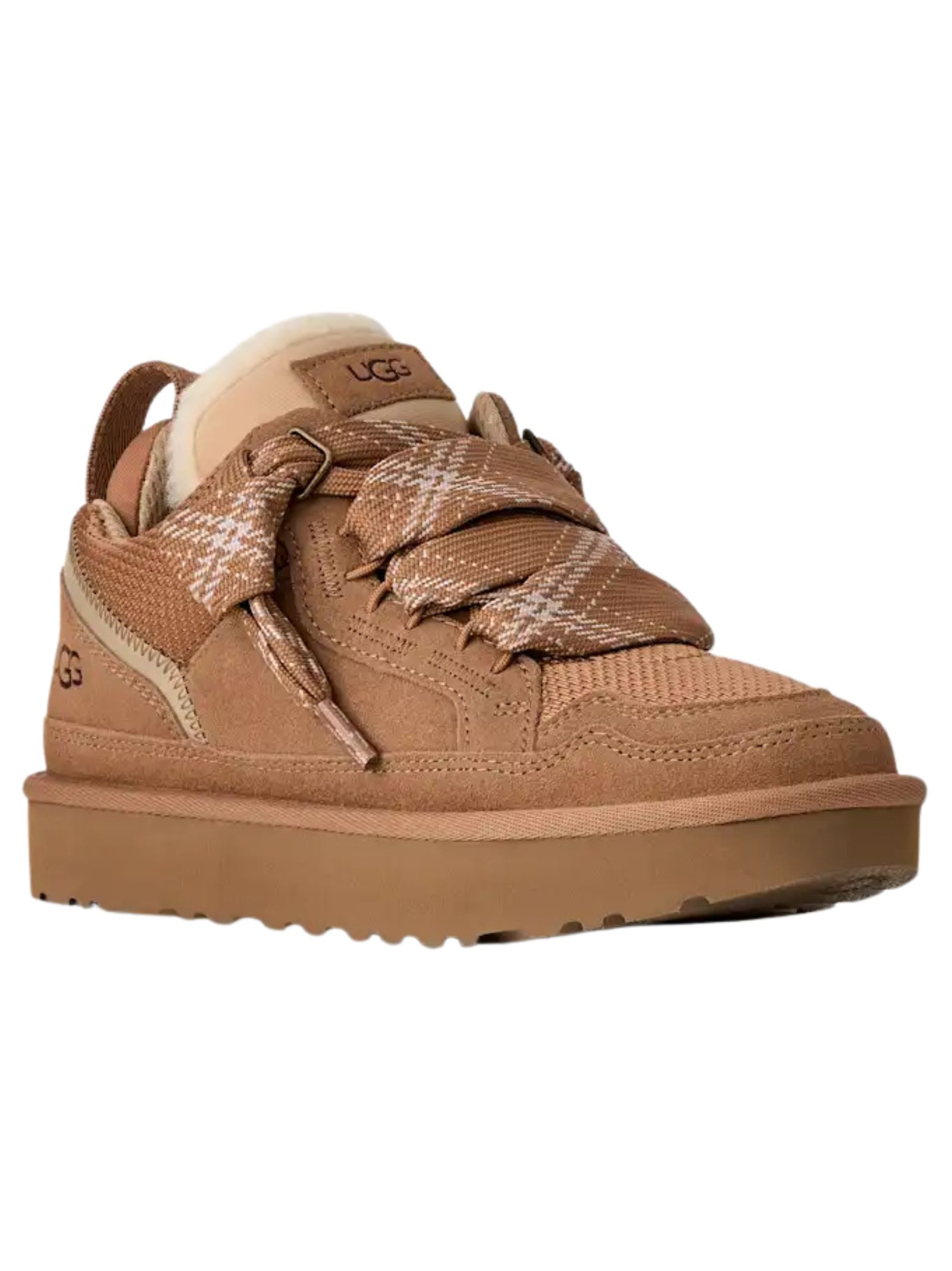 Sneakers UGG Lowmel di colore cammello (chestnut), il modello Lowmel incarna lo spirito nostalgico della West Coast. I lacci rotondi e spessi sono pensati per essere indossati sia sciolti sia allentati. Abbiamo scelto materiali morbidi ispirati alla primavera che richiamano le sneakers classiche. Presentano una tomaia in pelle scamosciata e tessuto, a cui abbiamo aggiunto una mascherina in mesh per le calde giornate estive. Tutto questo, su una suola interna sagomata e una suola in EVA da canna da zucchero, per il massimo comfort. Tomaia in rete di tela intrecciata riciclata e camoscio, cinturino sul tallone in tessuto resistente, applicazione con logo UGG®, collarino imbottito, linguetta oversize imbottita, lacci realizzati con fibre di poliestere riciclato UNIFI (100%), laccio piatto bicolore, Fodera in mesh di poliestere, realizzata con poliestere modificato da carbone di caffè (55%) e poliestere normale (45%), fodera in UGGplush (10 mm), realizzata con lana rigenerata (60%) e lyocell (40%), soletta in UGGplush (10 mm), realizzata con lana rigenerata (60%) e lyocell TENCEL (40%), suola interna in EVA, suola in EVA da canna da zucchero e logo UGG® in rilievo.