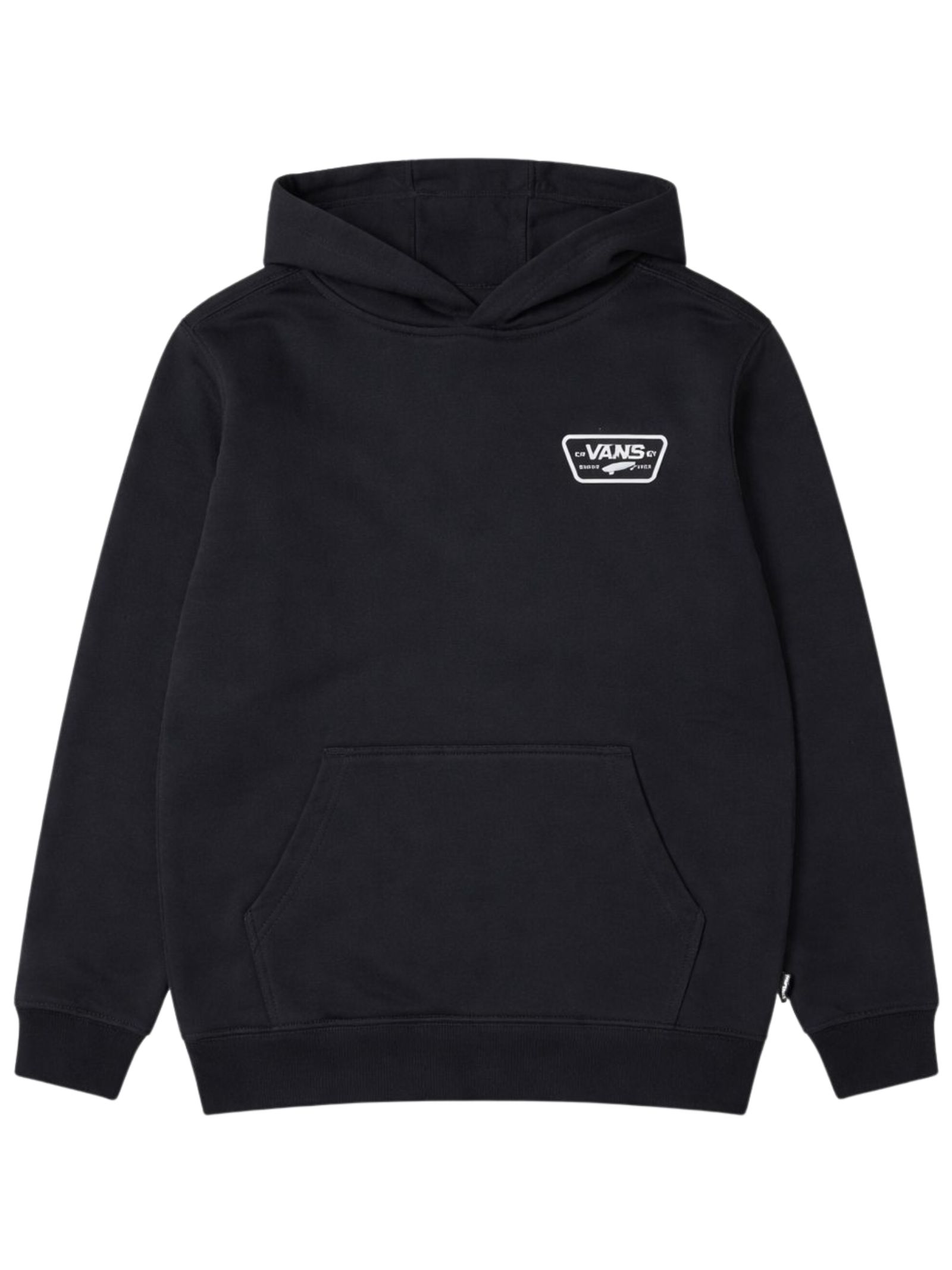 Vans Kids felpa di colore nero, modello con cappuccio, maniche lunghe, stampa logo sul petto e sul retro a contrasto bianco, due tasche laterali, vestibilità regolare. Composizione: 100% Cotone caldo