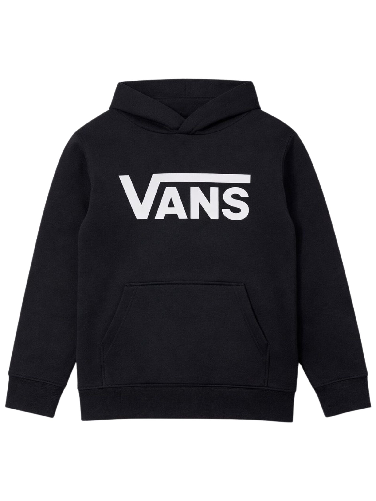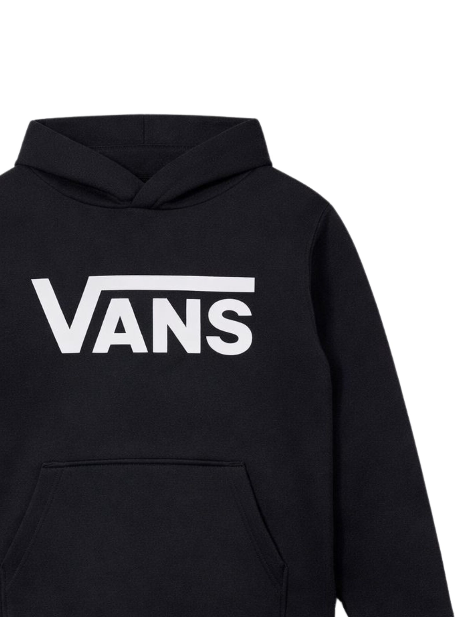 Vans Kids felpa di colore nero, modello con cappuccio, maniche lunghe, stampa logo centrale a contrasto bianco, due tasche laterali, vestibilità regolare. Composizione: 70% Cotone caldo 30% Poliestere